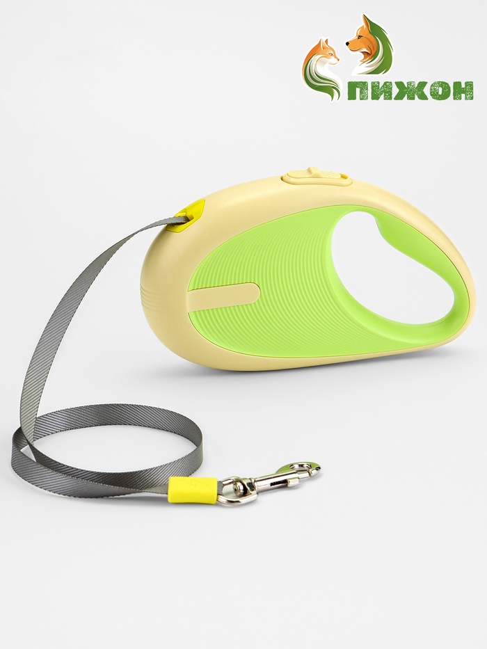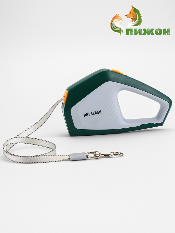 Рулетка - поводок для собак, лента 3 метра, белая/зелёная