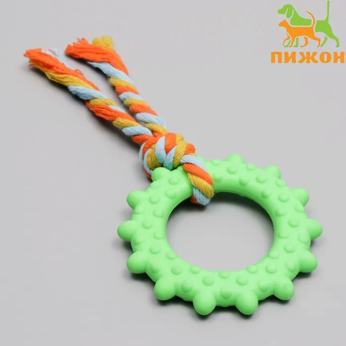 Игрушка жевательная с канатом "Кольцо с хвостом", зелёная