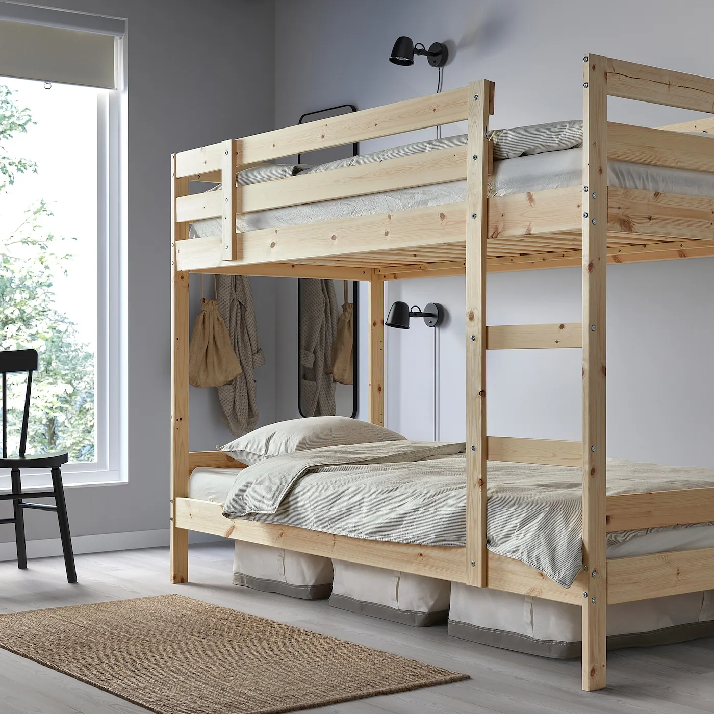 Эта доступная по цене двухъярусная кровать изготовлена из массива древесины — это прочный материал, который прослужит долго и подлежит переработке, когда дети вырастут и съедут. Хорошо для вашего бюджета и окружающей среды.
