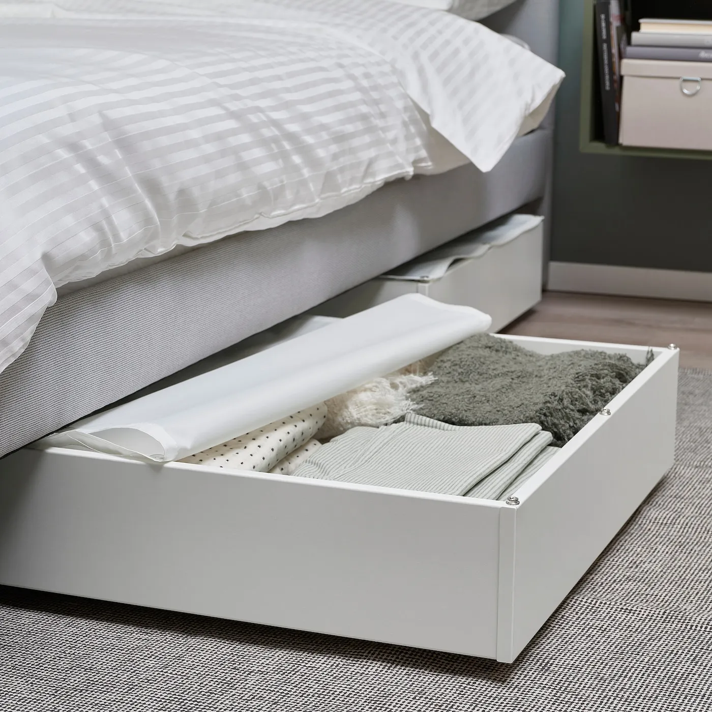 Умное решение для небольших пространств. Этот ящик превращает пространство под вашей кроватью в место для хранения постельных принадлежностей, подушек или сезонной одежды. Текстильная крышка защитит от пыли.