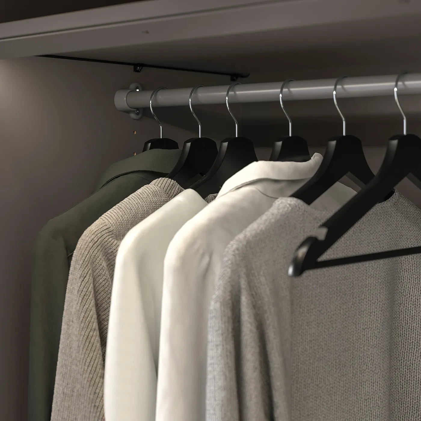 Штанга для одежды вмещает около 30 рубашек на вешалках.