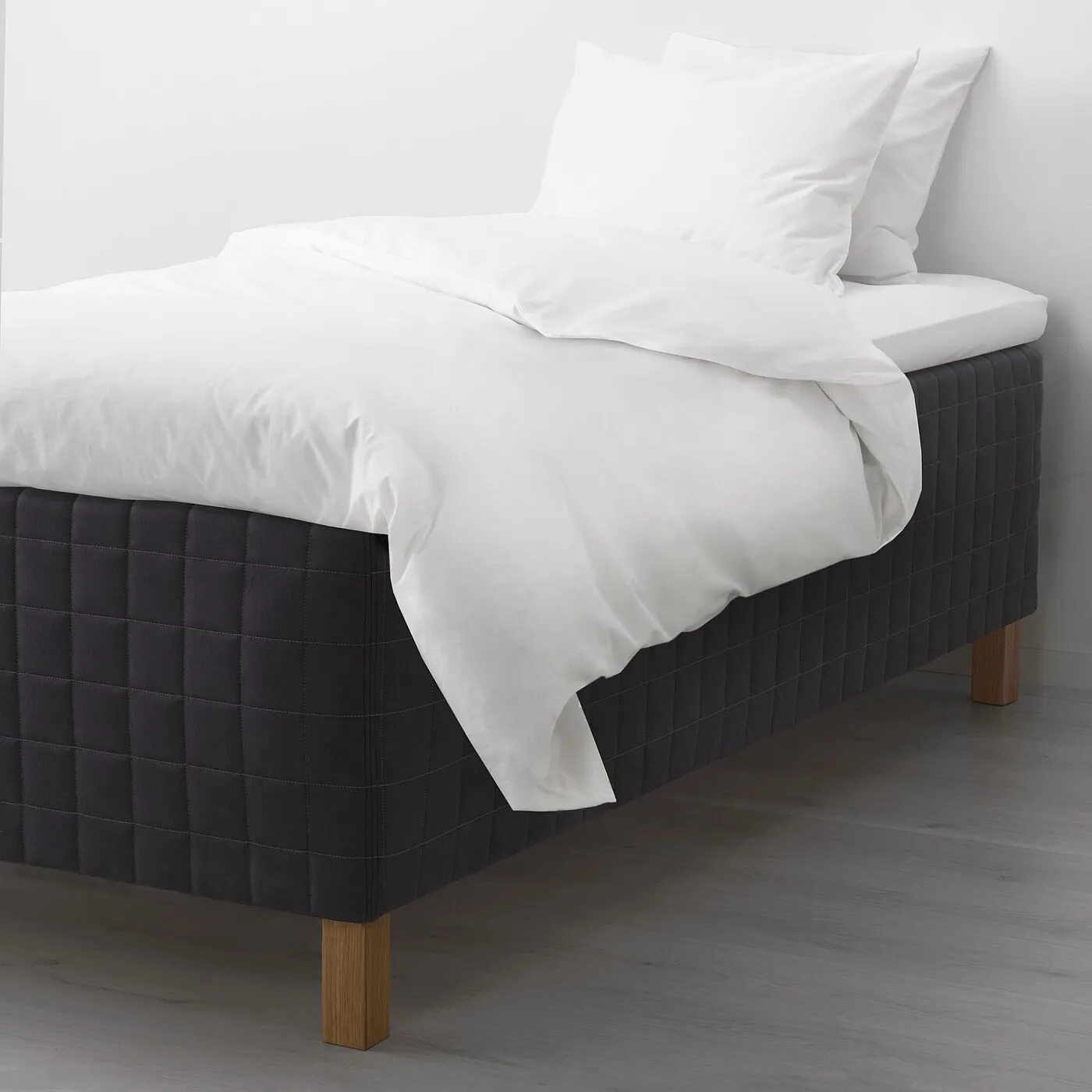 Пружинный матрас с деревянной основой не требует основания или металлических реек. Всё, что нужно - это матрасный чехол и ножки, чтобы кровать была готова.