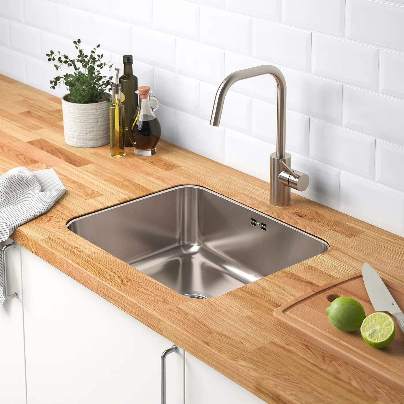 Поверхность столешницы предварительно обработана на фабрике твердым восковым маслом. Из-за особенностей материала, обработайте кромки и вырезы маслом для древесины STOCKARYD или TRIXIG перед установкой.