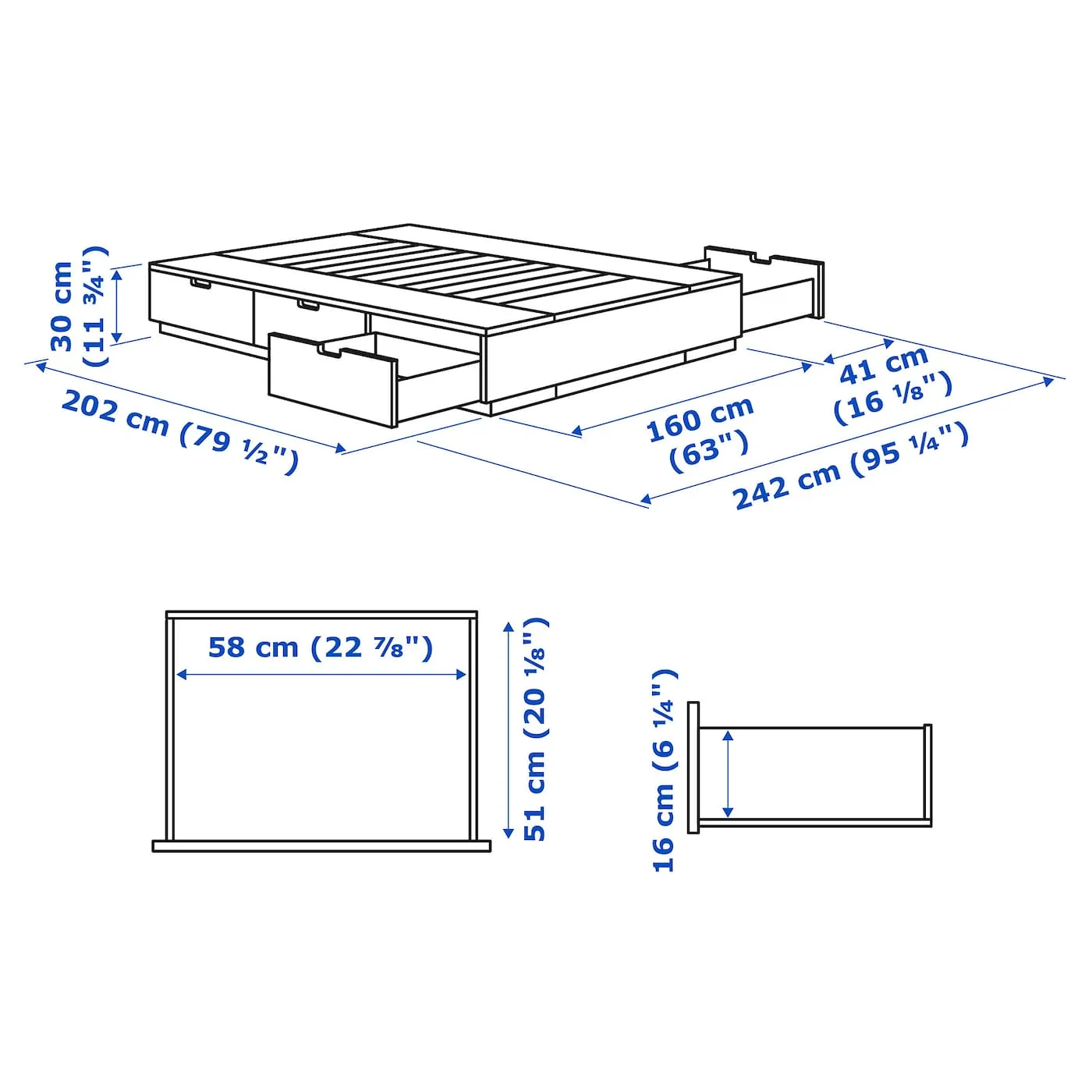 Кровать NORDLI не только обеспечивает комфортный сон, но и предлагает удобные решения для хранения благодаря шести вместительным ящикам. Это практичное решение для одежды, дополнительных одеял и спокойных снов — все это компактно умещается в небольшом пространстве.