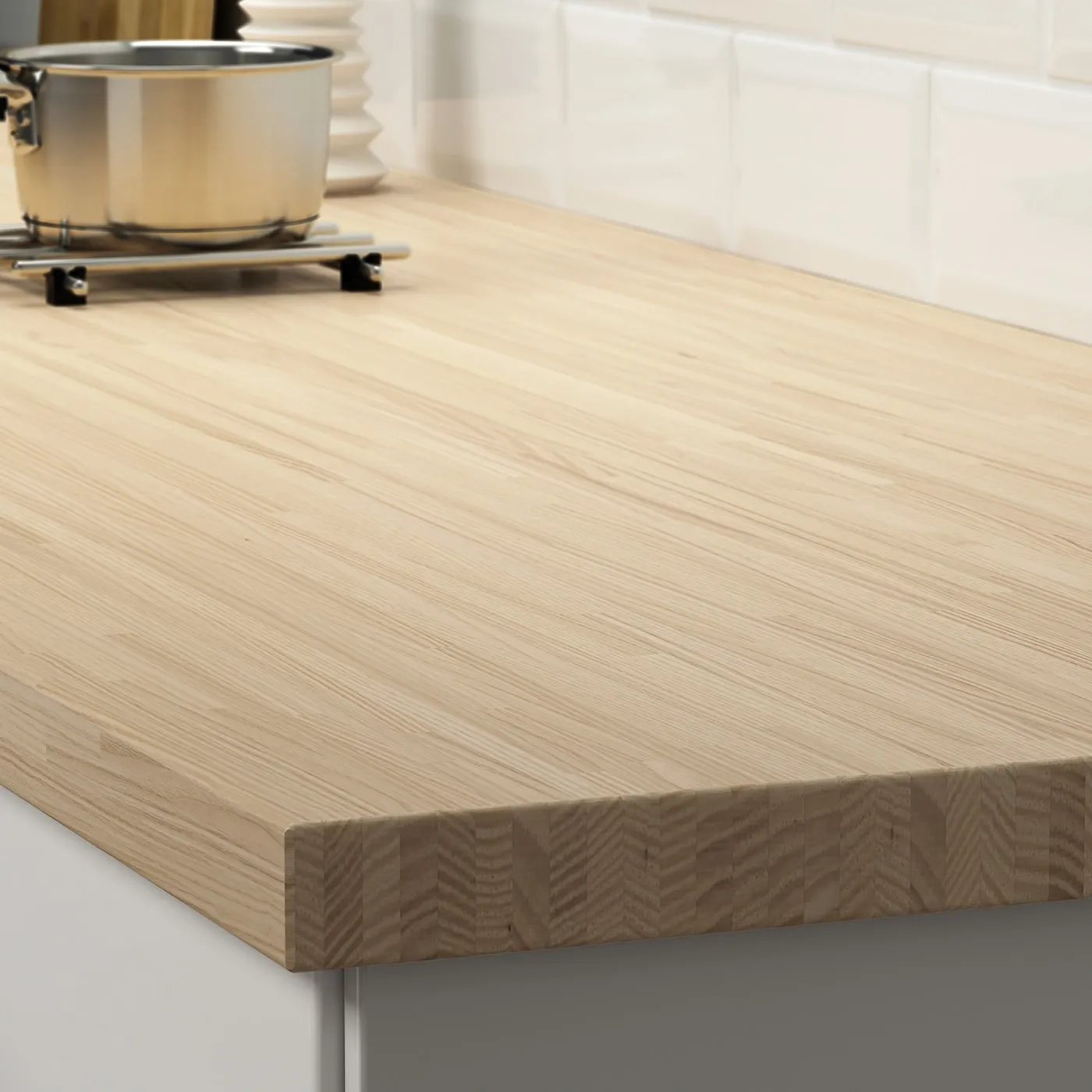 Поверхность столешницы обработана на фабрике твёрдым маслом. Из-за особенностей материала обработайте кромки и вырезы маслом для ухода за древесиной STOCKARYD или TRIXIG перед установкой.