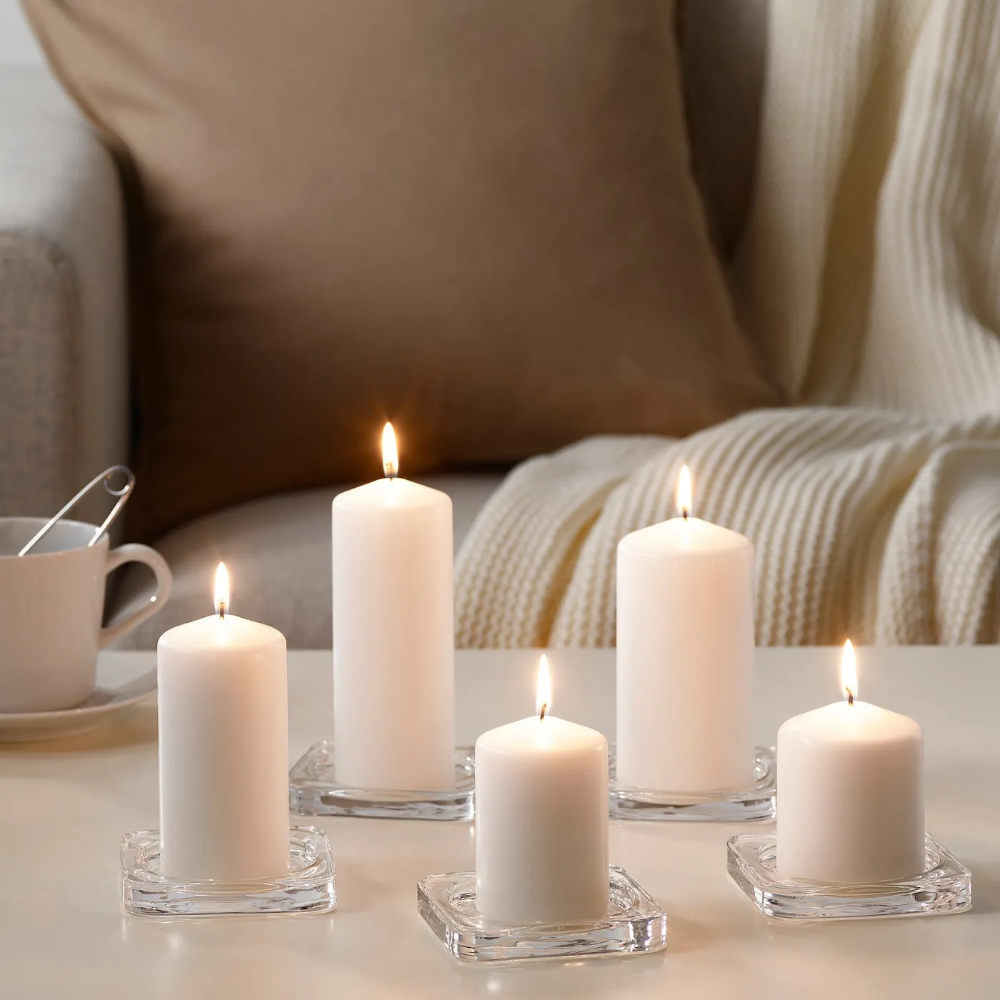 Столбиковые свечи имеют длительное время горения и прекрасно смотрятся вместе на подставке для свечей.