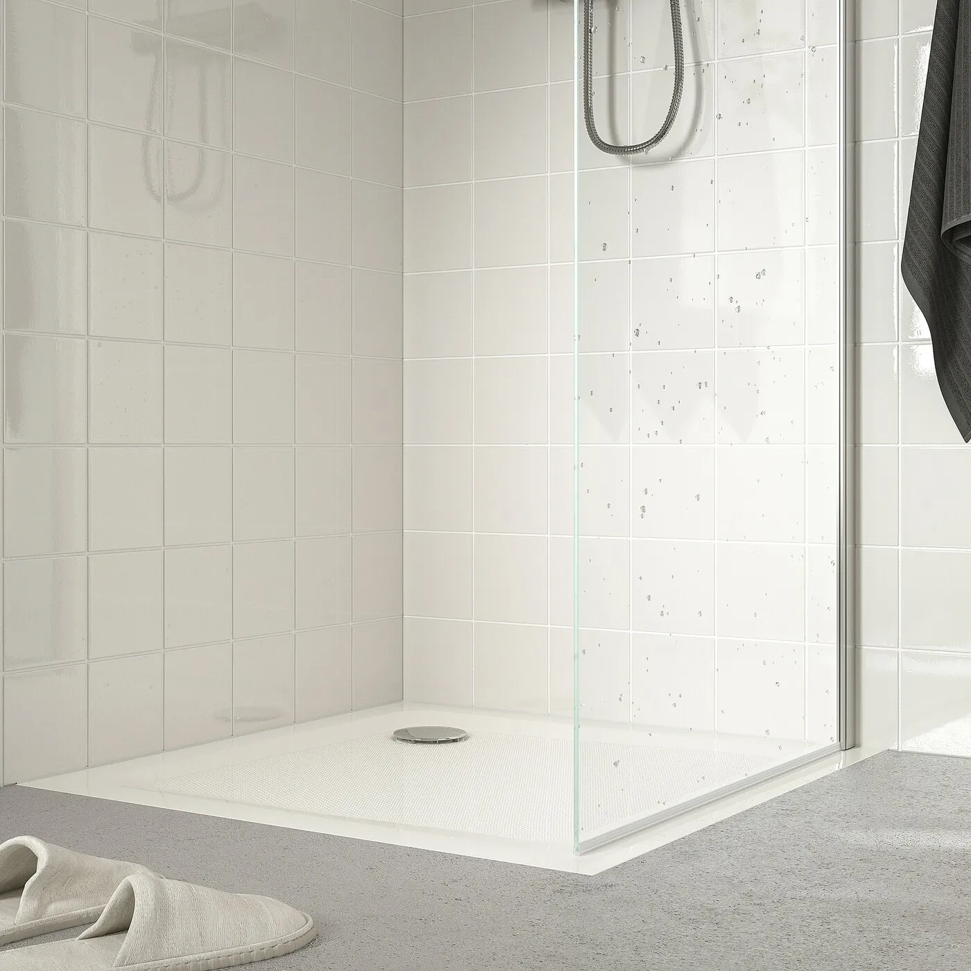 Можно использовать с душевыми дверями или экранами, доступными в IKEA или других производителей.