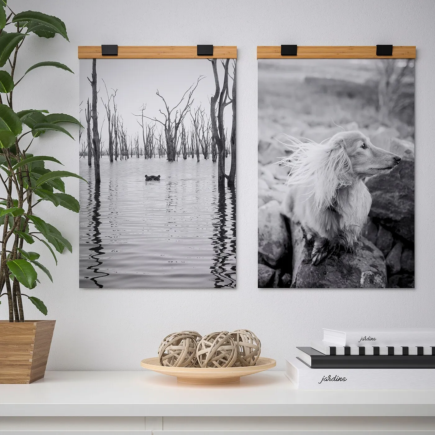 Держатель для постера крепится к верхней и нижней части вашего постера и легко вешается с помощью одного шурупа.