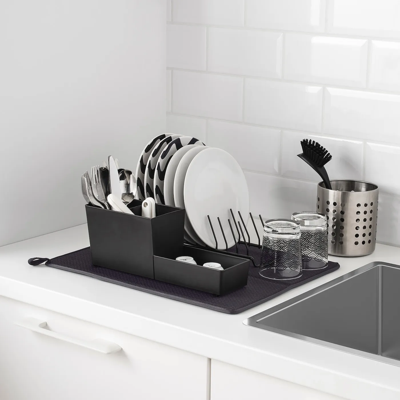 Этот коврик для сушки быстро и удобно увеличивает пространство для сушки посуды.