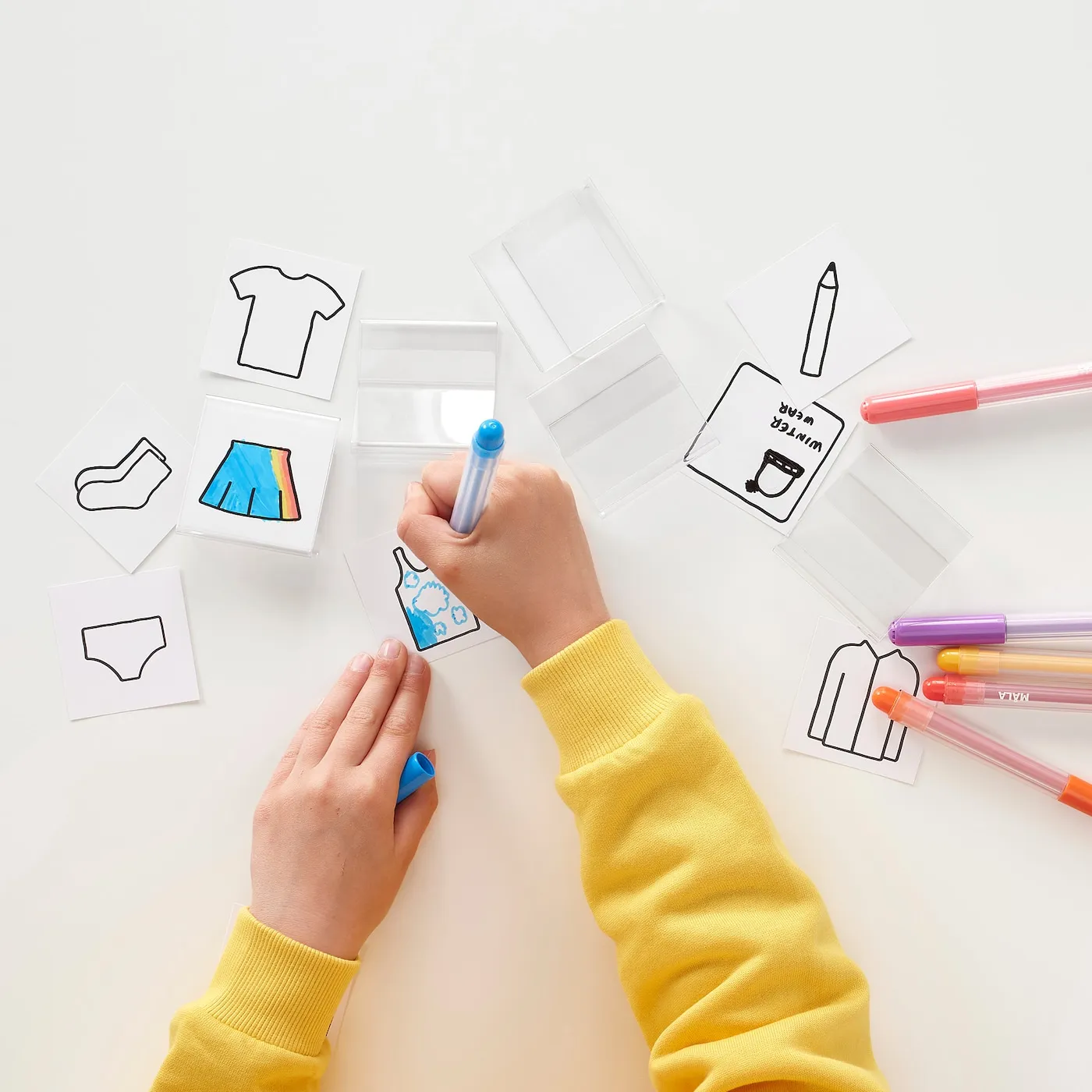 С помощью изображений внутри шкафа можно показать порядок надевания одежды, чтобы ваш ребенок мог сам собраться утром.