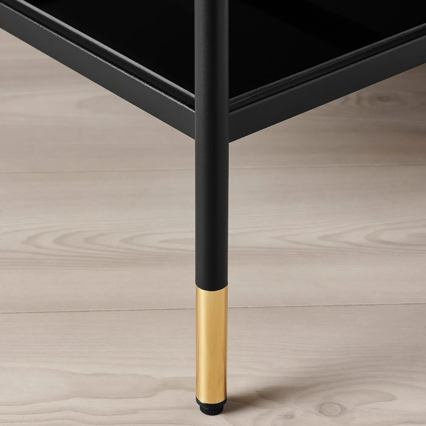 Комбинация дымчатого стекла, черного металла с порошковым покрытием и золотистых деталей на ножках обеспечивает стильный и уравновешенный, но при этом эффектный вид.