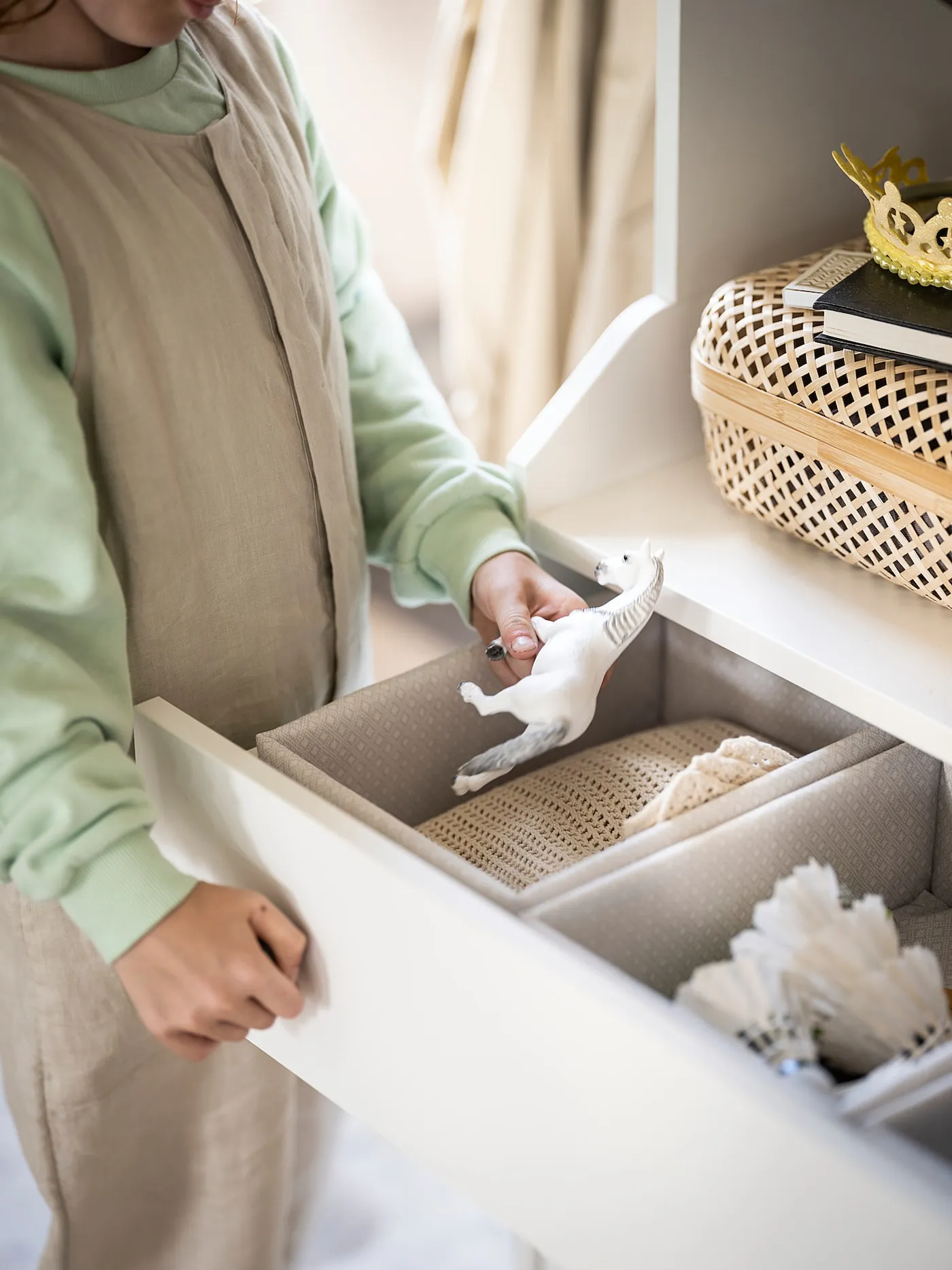Размеры органайзера идеально подходят для хранения постельного белья, нижнего белья, а также канцелярских принадлежностей, кабелей и других мелочей на рабочем столе.