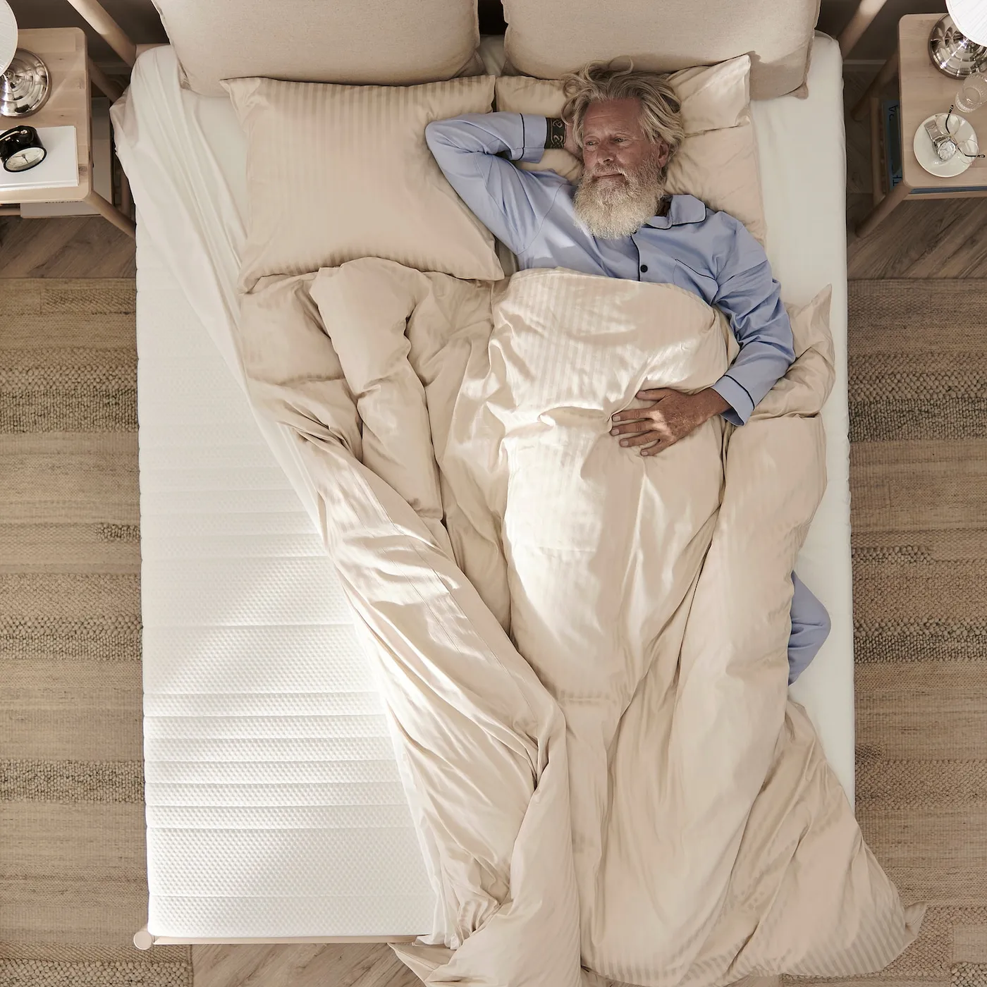 Твердый матрас высотой 24 см. Пена с эффектом памяти в сочетании с высокоэластичной пеной, слой пружинных карманов и зоны комфорта для равномерного распределения веса тела — и мягкий моющийся чехол.