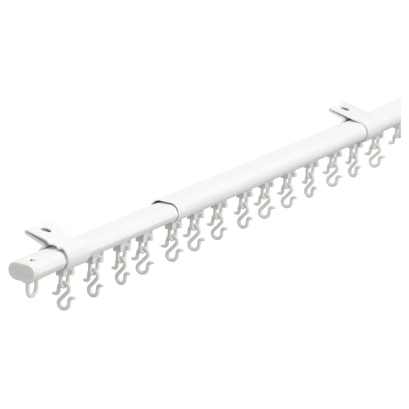 Состав: 1 телескопический карниз, 3 потолочных крепления, 2 заглушки и 22 ползунка.