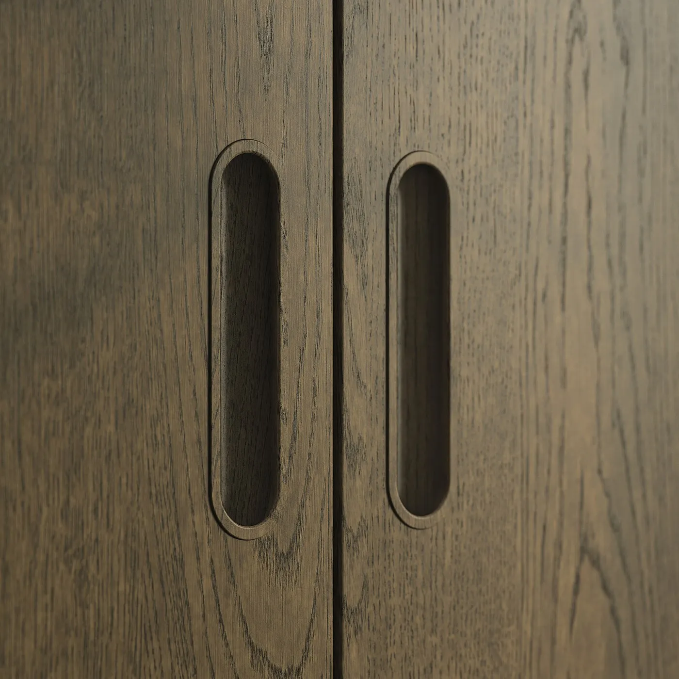 Хорошо сочетается с дверью TONSTAD со структурированным стеклом того же цвета. Комбинируйте дверцу с дубовым шпоном с каркасом PAX в бежевом или белом цвете, а коричневую морёную дверцу с каркасом тёмно-серого цвета.