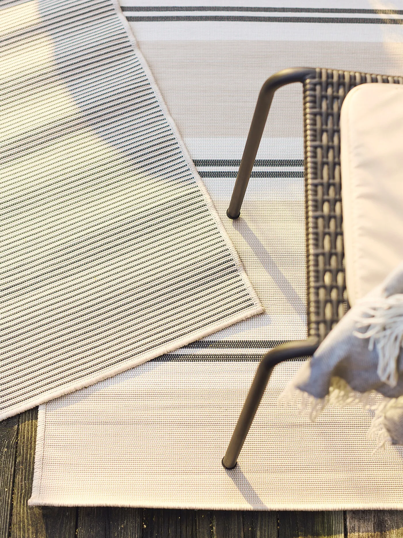 Универсальный ковёр с классическим полосатым узором, который идеально подходит как для дома, так и для улицы. Если захотите изменить интерьер, просто переверните ковёр и используйте обратный рисунок на другой стороне.