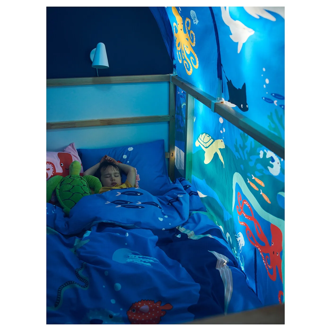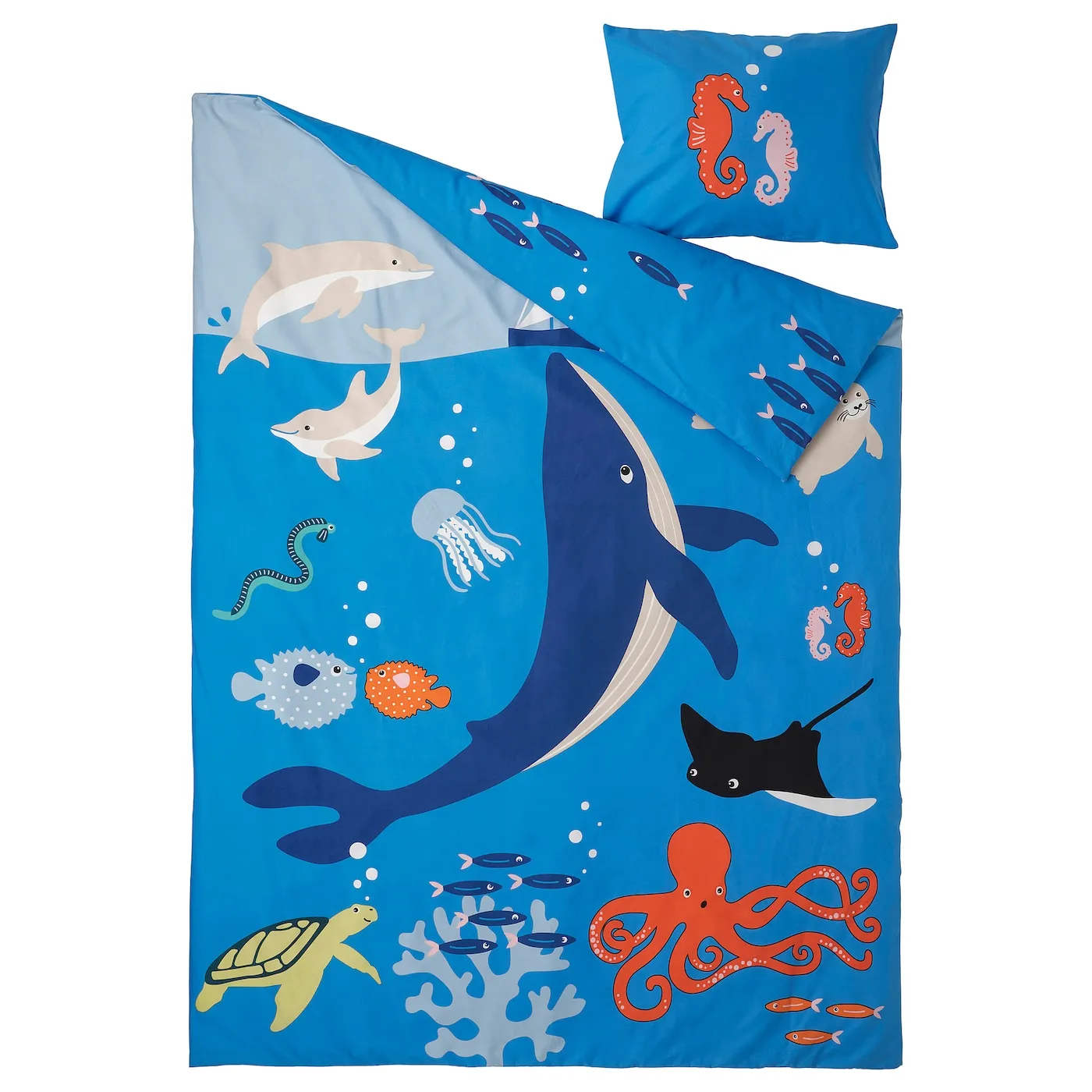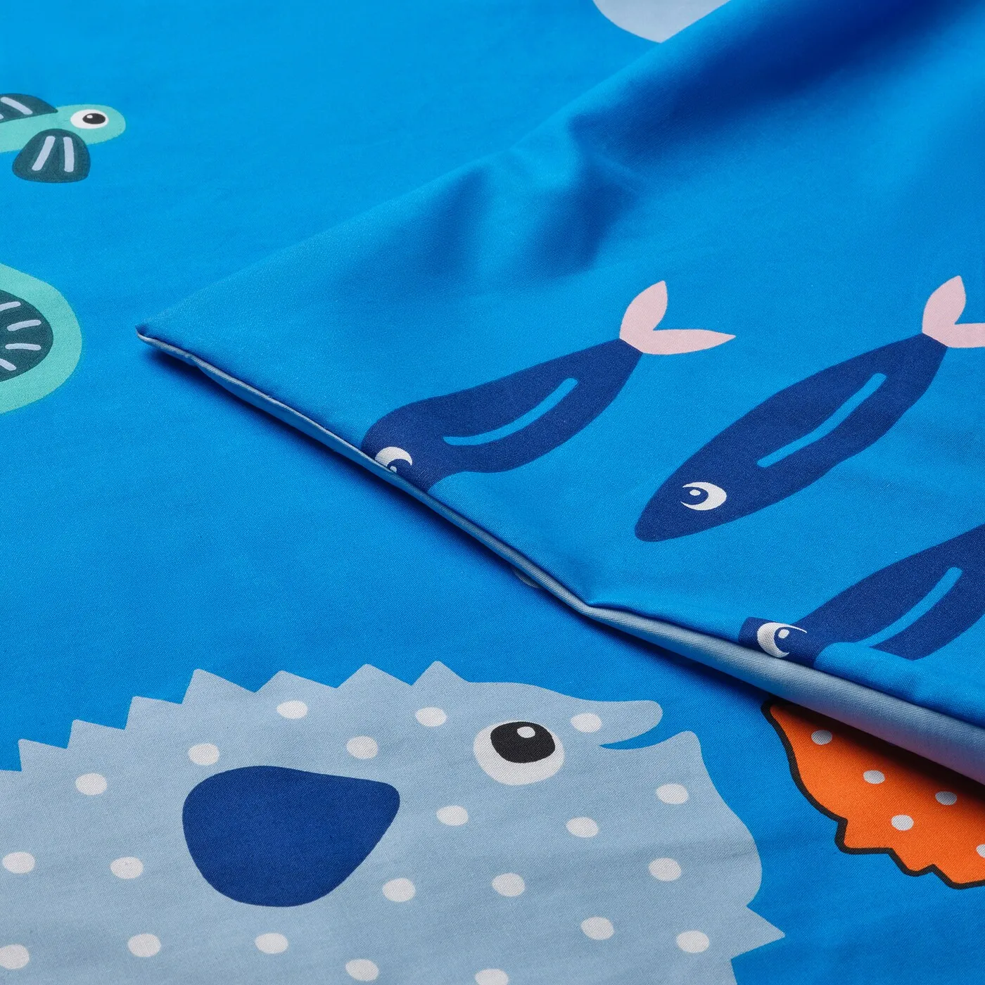 Под волнами океана скрывается волшебный мир, полный удивительных существ. Узнаете всех этих пловцов на пододеяльнике и наволочке, сделанных из мягкой смеси хлопка и лиоцелла с разными узорами на сторонах?