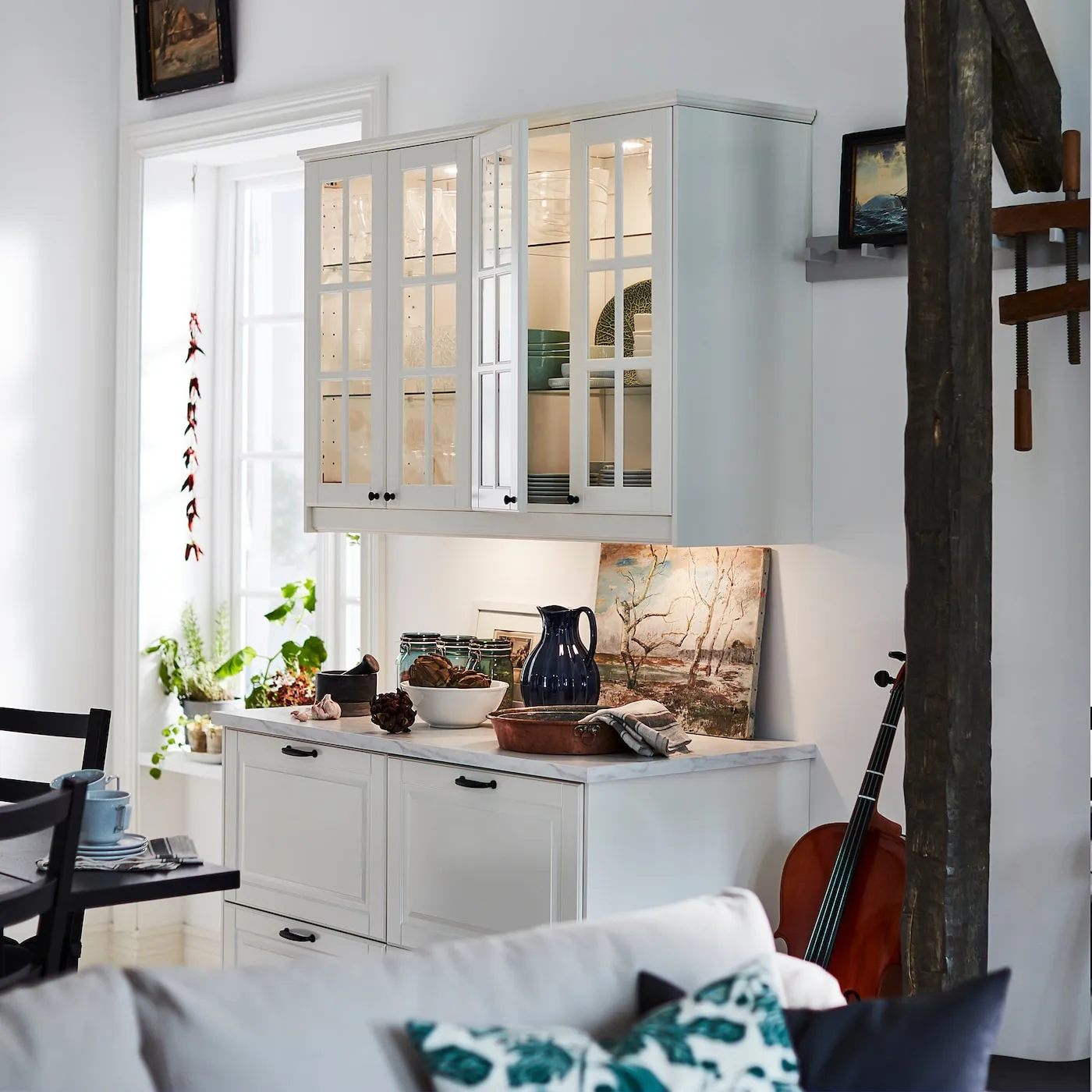 Покажите свою любимую коллекцию посуды. Освещение создает атмосферу и помогает лучше рассмотреть содержимое шкафов. Легко установить самостоятельно — электрик не требуется.