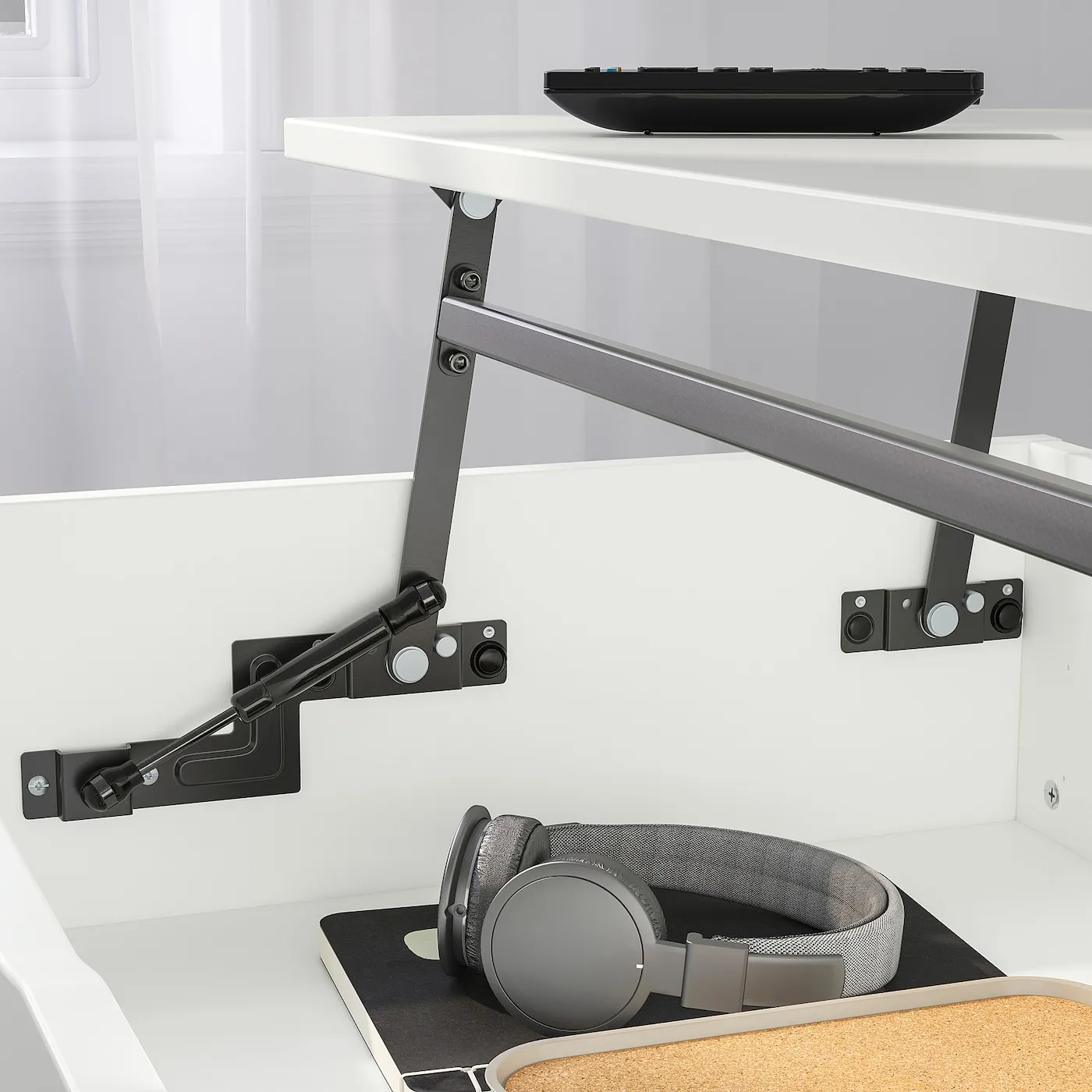 Механизм подъема оснащен замком, предотвращающим неожиданное закрытие столешницы, и газовой пружиной, обеспечивающей плавное и безопасное закрытие.