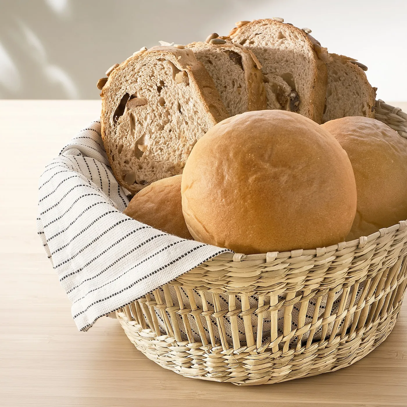 Пусть природа украсит ваш обеденный стол. Эта круглая корзина, сплетенная вручную из камыша, идеально подходит для хлеба или фруктов. Уникальное изделие ручной работы, которое украсит стол во время трапезы.