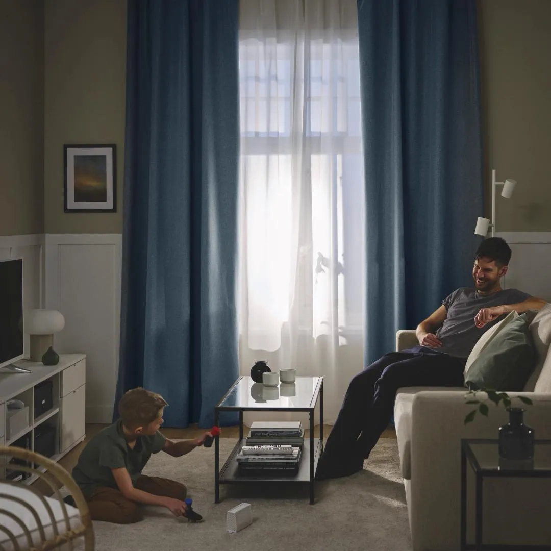 Цвет и ткань легко сочетаются с лёгкими шторами и другими текстилями.