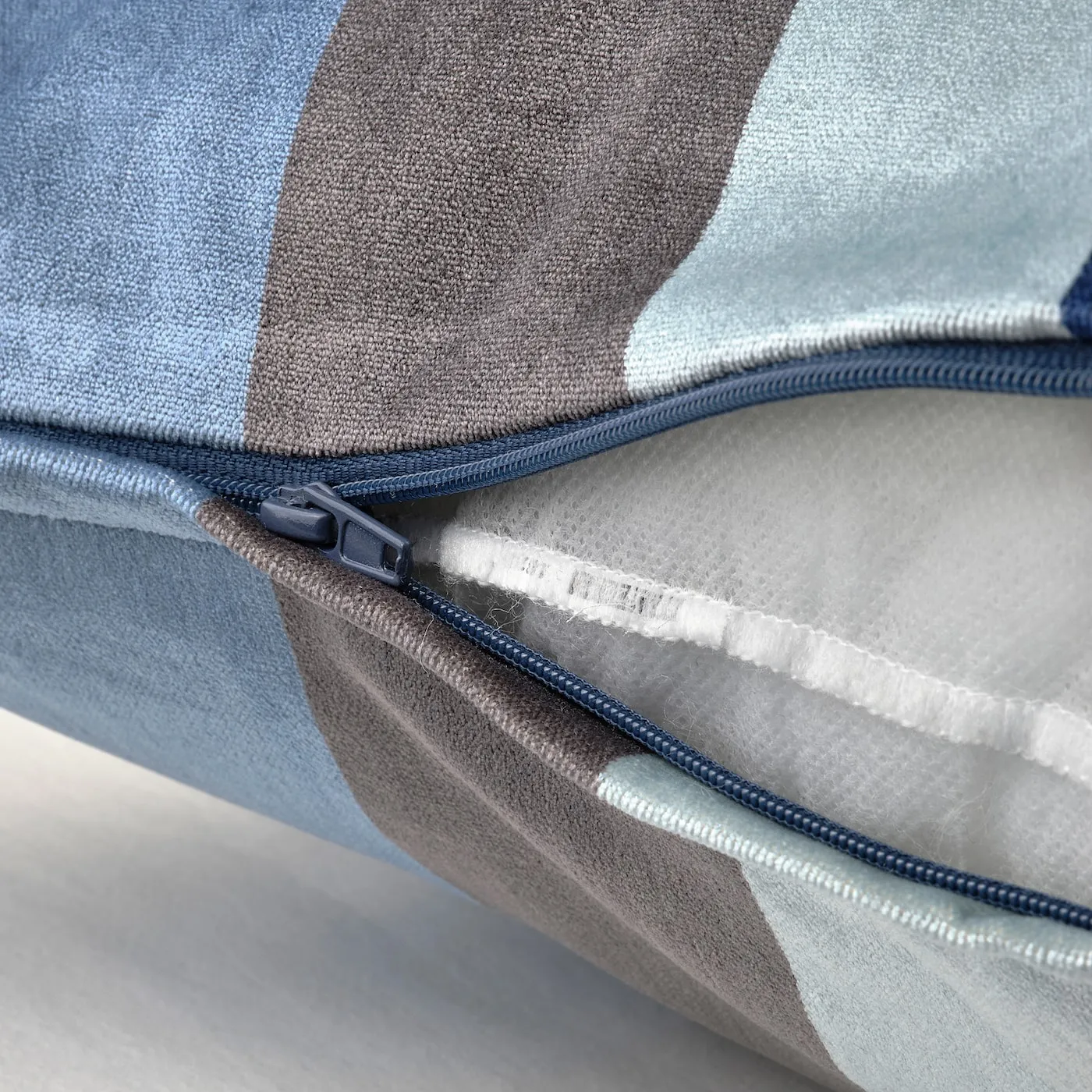 Чехол для подушки VATTENVÄN с синими полосками приятен на ощупь и радует глаз. Бархат из хлопка и вискозы имеет блестящую поверхность и создаёт атмосферу роскоши в любой спальне или гостиной.