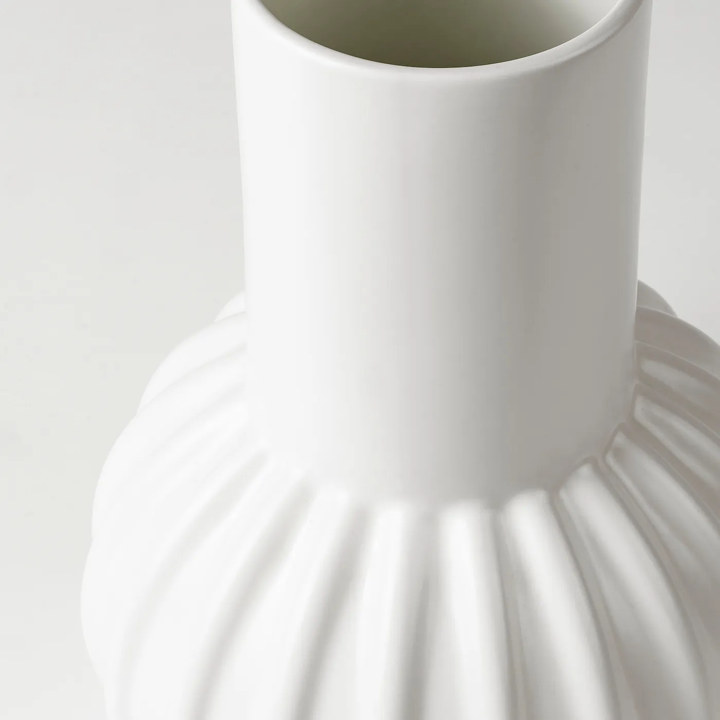 В процессе перезапуска мы обновили материал, заменив кремневую керамику на глазурованный керамический фарфор, изменили форму горлышка низкой вазы на гладкое кольцо и обновили цветовую палитру.