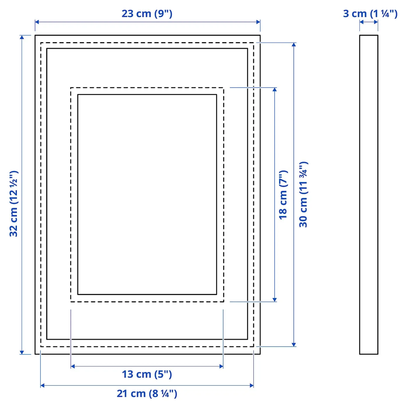 Эта рама подходит для изображения размером 13x18 см, если вы используете ее с картоном, и для изображения размером 21x30 см, если без него.