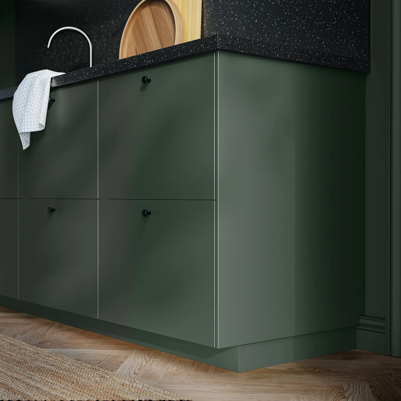 Кухонные фасады HAVSTORP в глубоких зелёных оттенках отличаются чёткими линиями и гладкой поверхностью. Декоративные панели придают вашей кухне единый стиль и подчеркивают её вне времени.