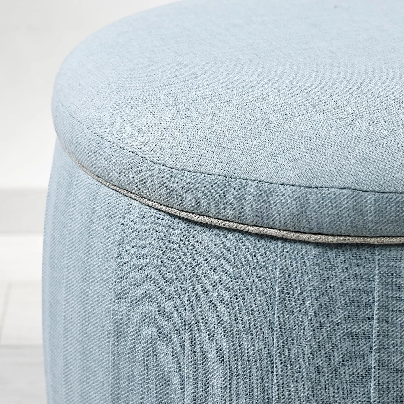 Компактный и уютный пуф, который скрывает внутри себя удивительно вместительное пространство для хранения. Настоящая находка с изящными деталями: вертикальными складками по бокам и декоративной отстрочкой по кругу крышки.