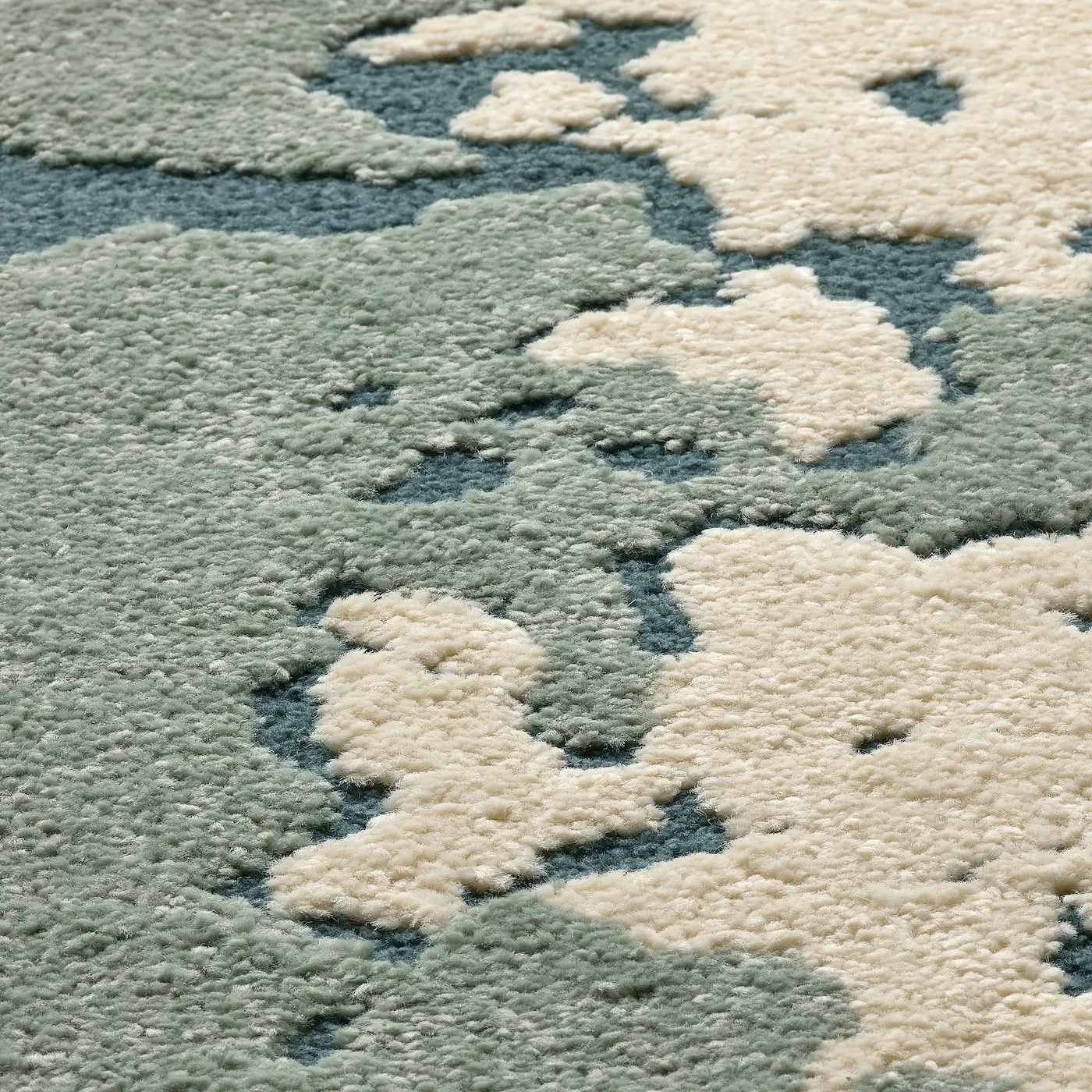 Спутниковый снимок Земли или карта архипелага? Абстрактный узор зеленого и белого оттенков выполнен с использованием различной высоты ворса, создавая тактильное впечатление, которое побуждает фантазию.