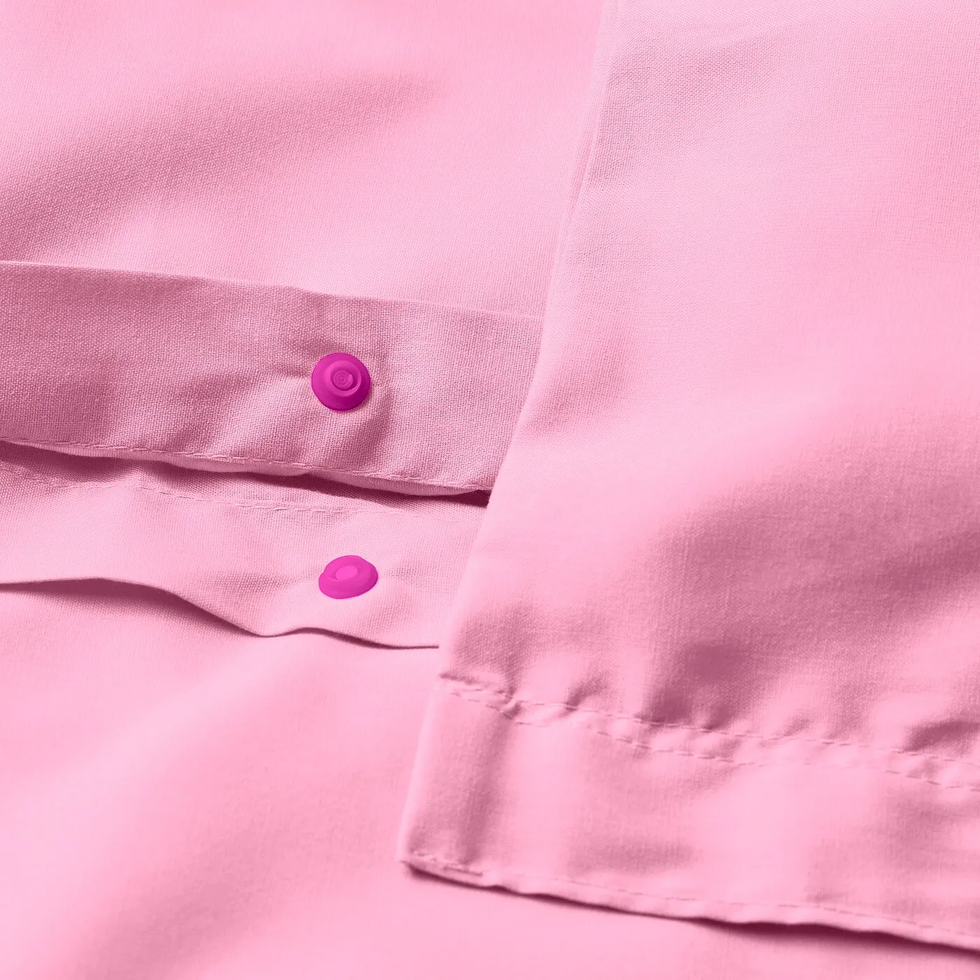 Побалуйте себя и свою спальню новым ярким комплектом постельного белья с видимыми кнопками-застежками. Легкая комбинация полиэстера и вискозы с блеском, устойчива к сминанию.