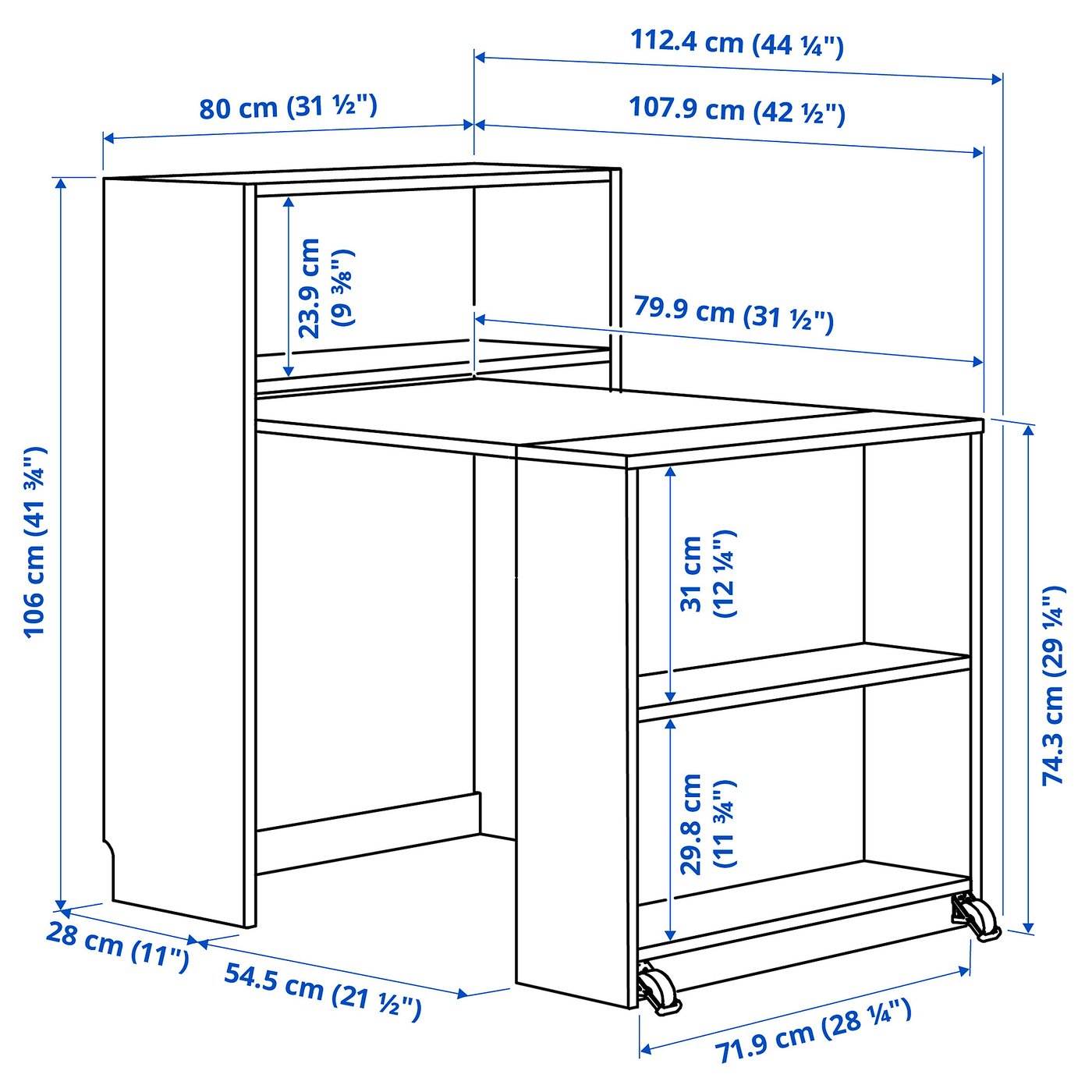 Нижнюю часть полки и столешницы можно легко выдвигать, складывать и фиксировать, чтобы стол оставался устойчивым и безопасным в использовании.