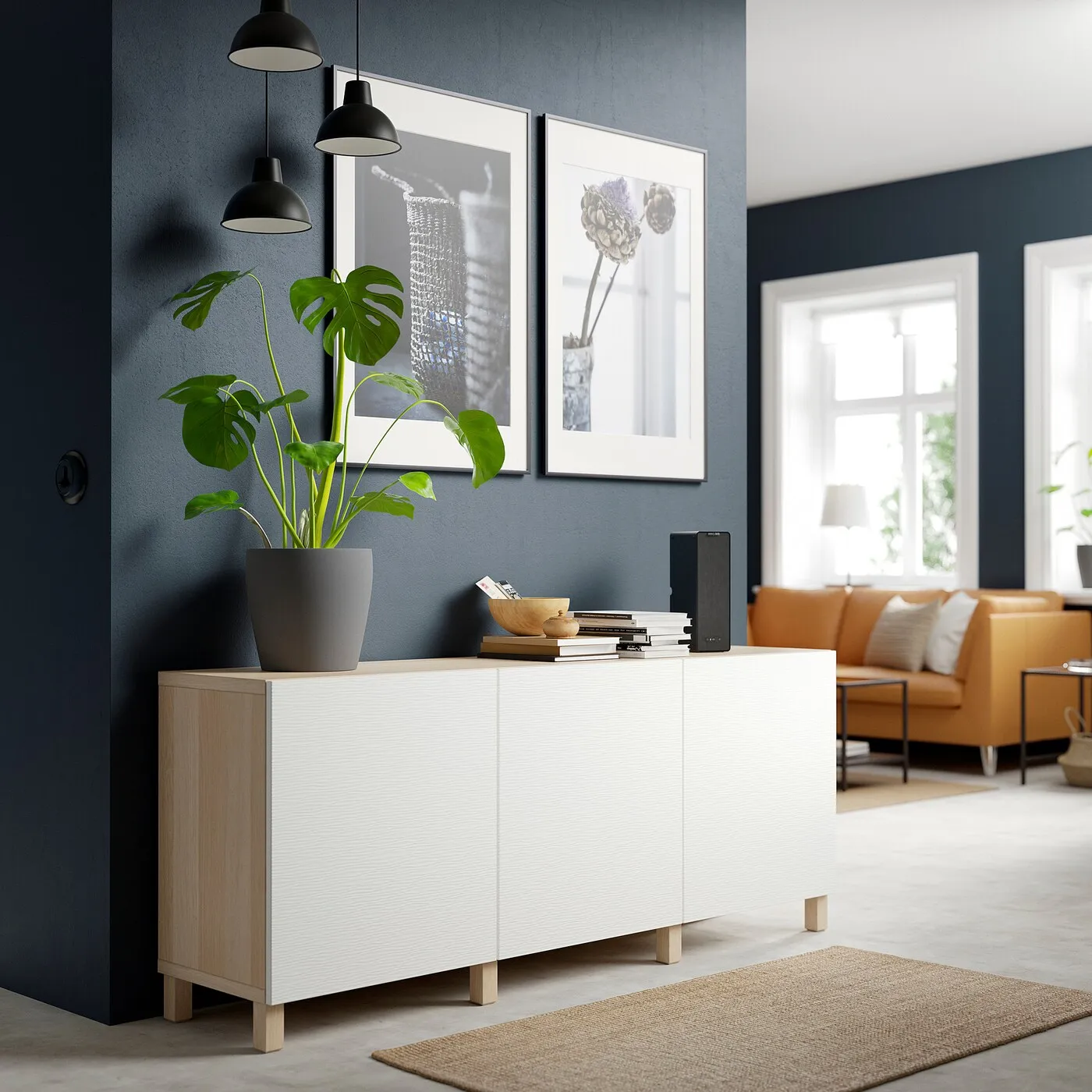 Эта комбинация состоит из нескольких отдельных блоков. Используйте верхний элемент BESTÅ, продающийся отдельно, чтобы закрыть стык между рамами и создать единый вид.