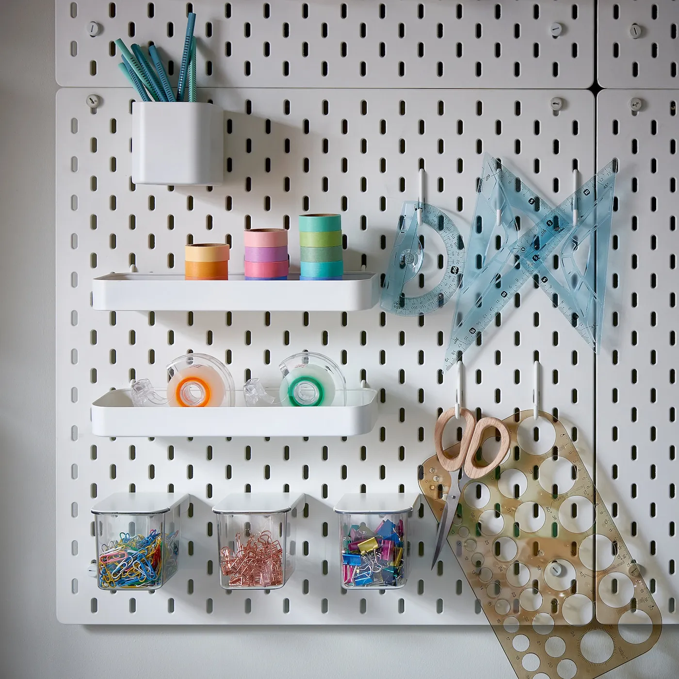 С перфорированной панелью и аксессуарами SKÅDIS легко навести порядок в любой комнате дома и быстро находить нужные вещи.