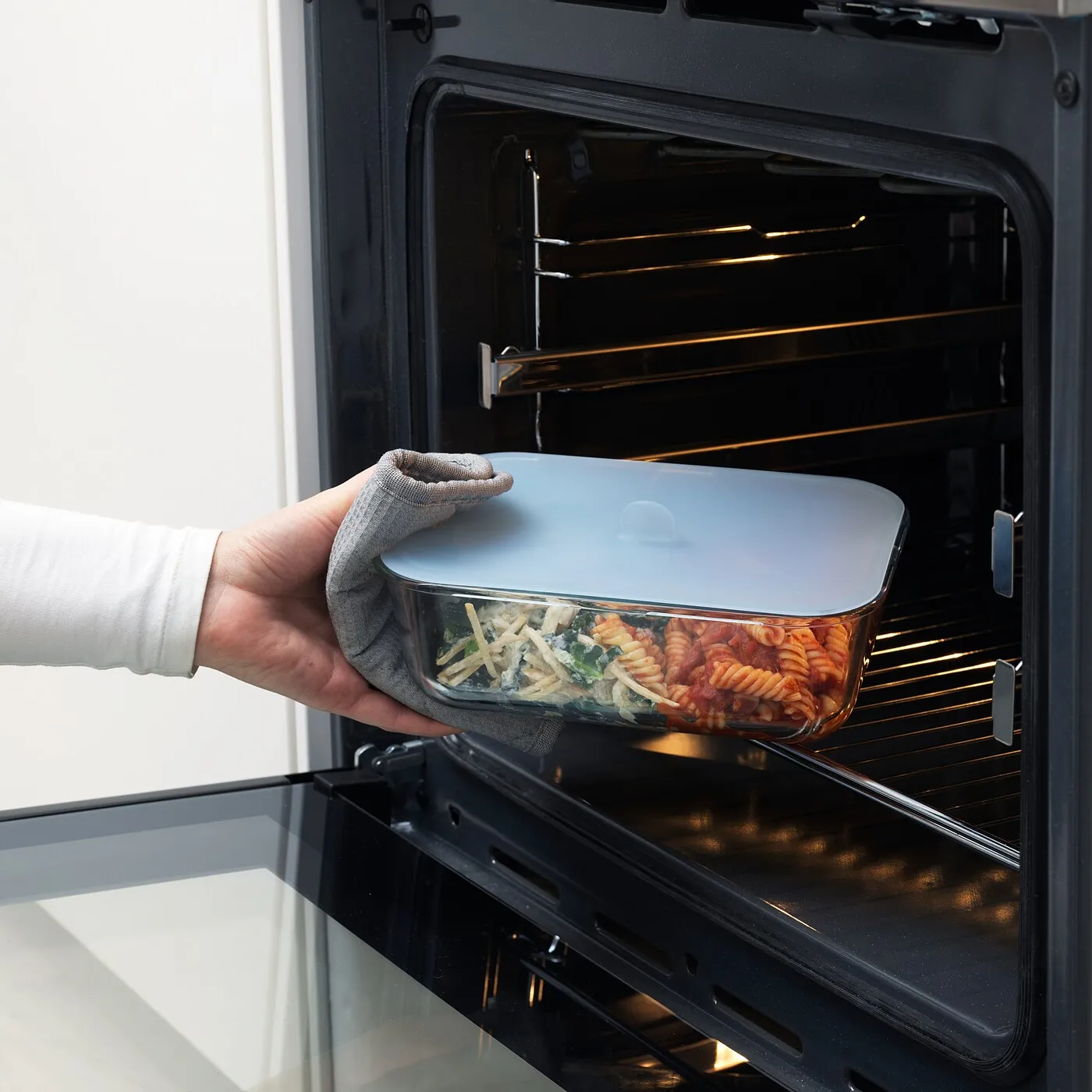 Контейнер из жаропрочного стекла можно использовать как в качестве формы для выпекания, так и для подачи на стол.