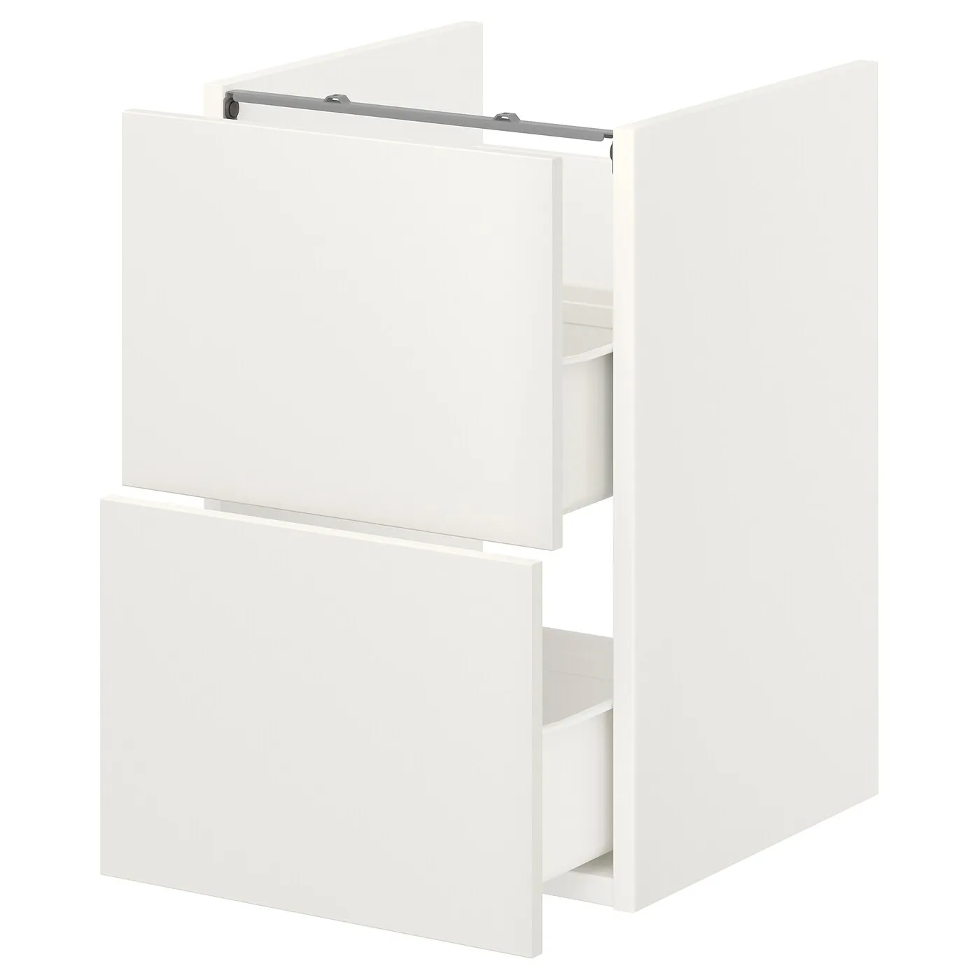 Серия ENHET позволяет легко обновить интерьер ванной комнаты. Эта тумба под раковину оснащена 2 удобными ящиками для ваших нужных вещей и белыми фасадами, которые добавят свет в помещение.