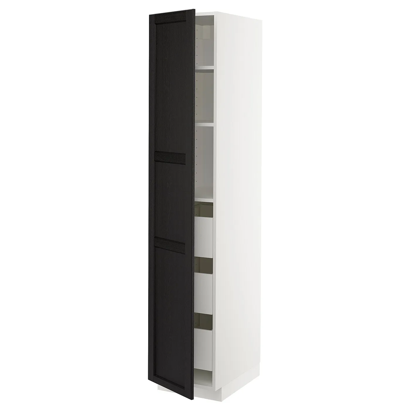 Система METOD позволяет вам создать кухню своей мечты с бесконечными возможностями для дизайна. В сочетании с фасадами Лерхюттан с черной морилкой и скошенными краями кухня приобретет теплый и классический характер.