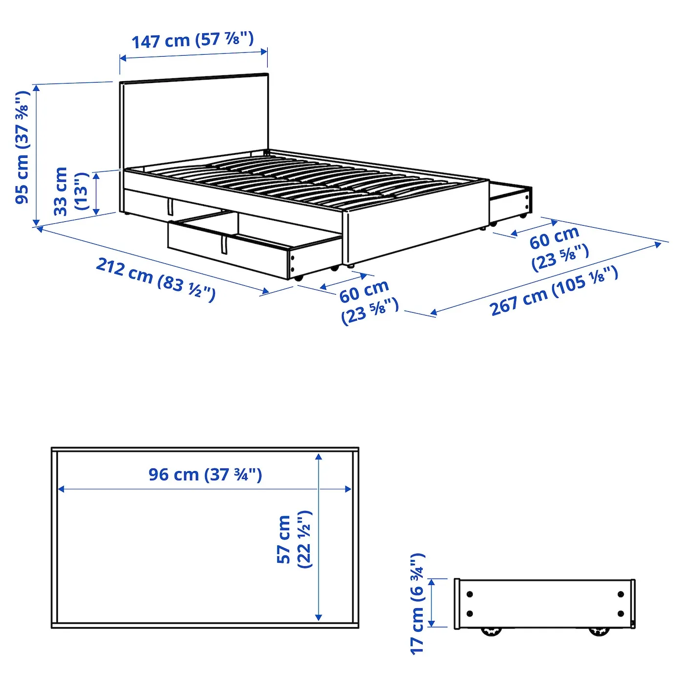 Каркас кровати GLADSTAD с ящиками для хранения отличается лаконичным и современным дизайном с мягким изголовьем и нежным чехлом. Ящики легко выкатываются из-под кровати, обеспечивая удобное хранение.