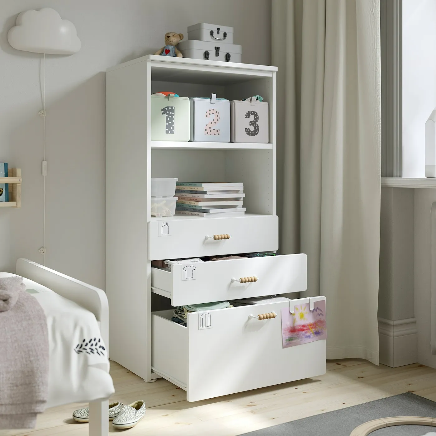 Этот книжный шкаф предлагает много места для хранения в компактной форме — от младенчества до подросткового возраста. На открытых полках удобно разместить вещи, которые всегда под рукой, а в ящиках найдется место для предметов любого размера.