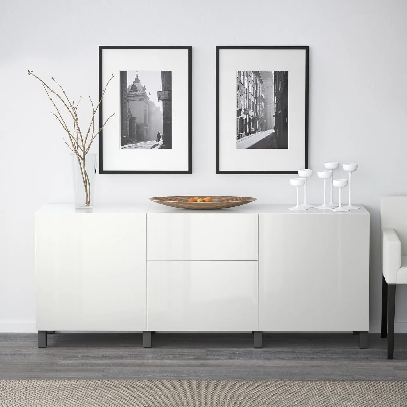 Ножки приподнимают комбинацию BESTÅ над полом, придавая мебели лёгкий воздушный вид и облегчая уборку под ней.