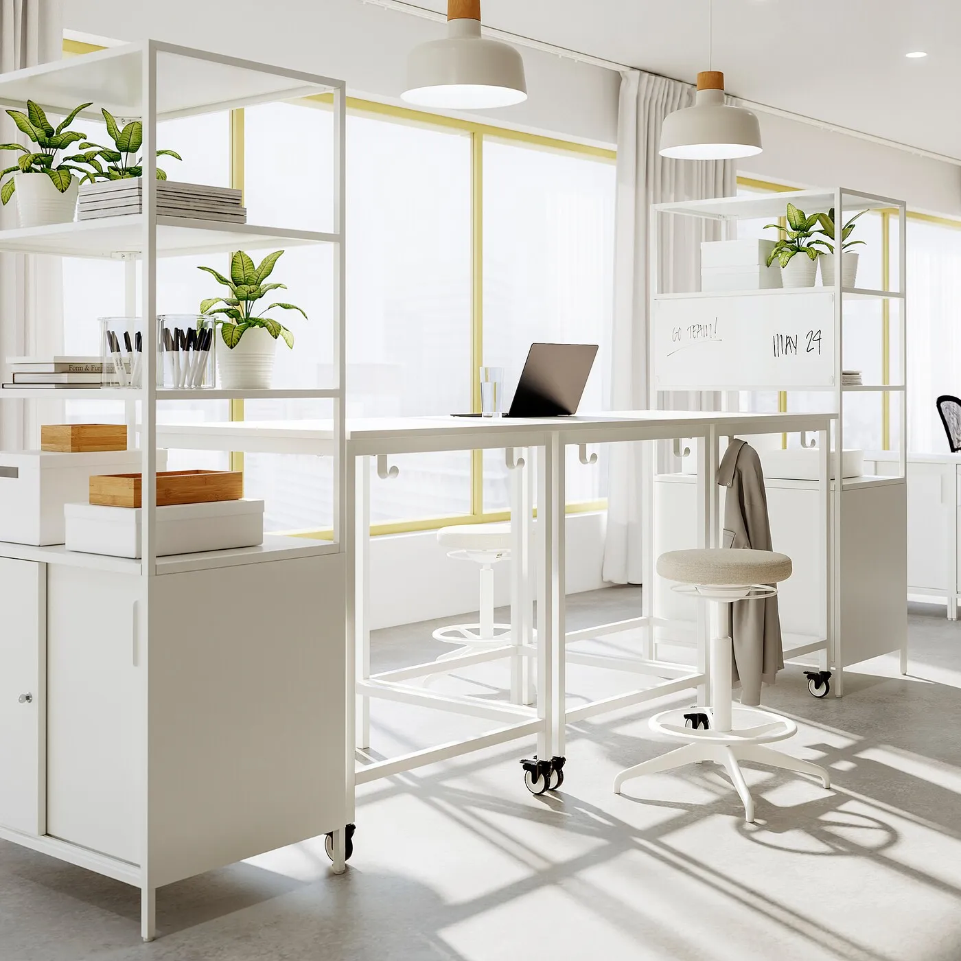 Create temporary workspaces by placing several TROTTEN meeting tables together and complete with LIDKULLEN sit/stand support.