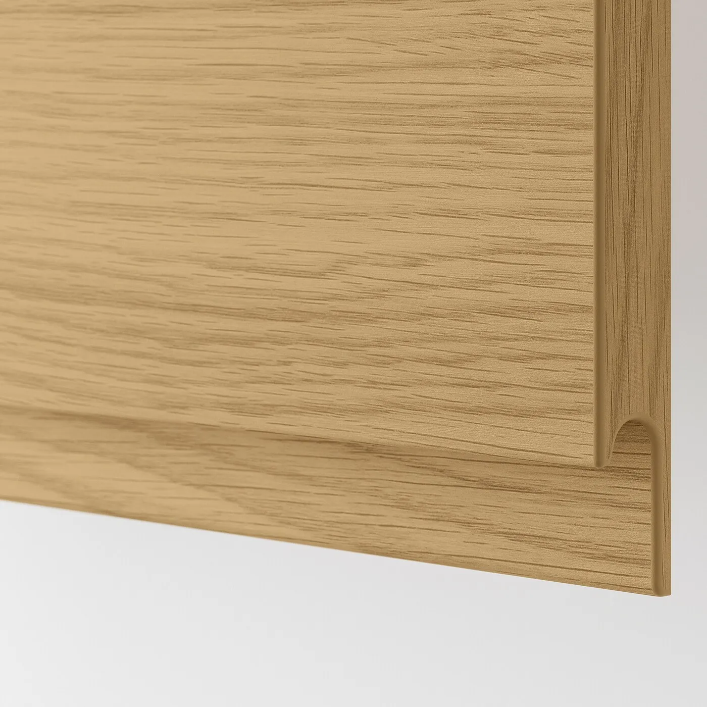 Кухонная система METOD открывает безграничные возможности для создания кухни вашей мечты. В сочетании с фасадами VOXTORP с дубовой текстурой и интегрированными ручками вы получите минималистичный образ с теплым акцентом.