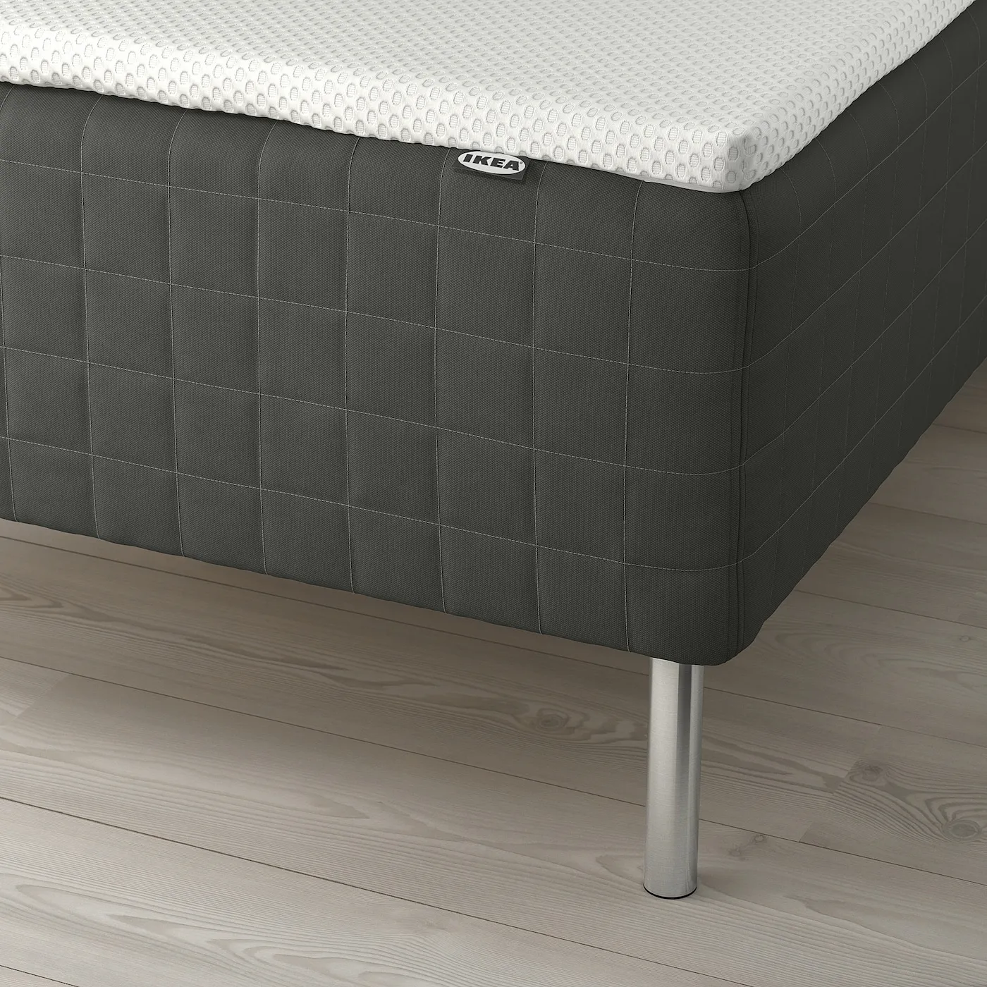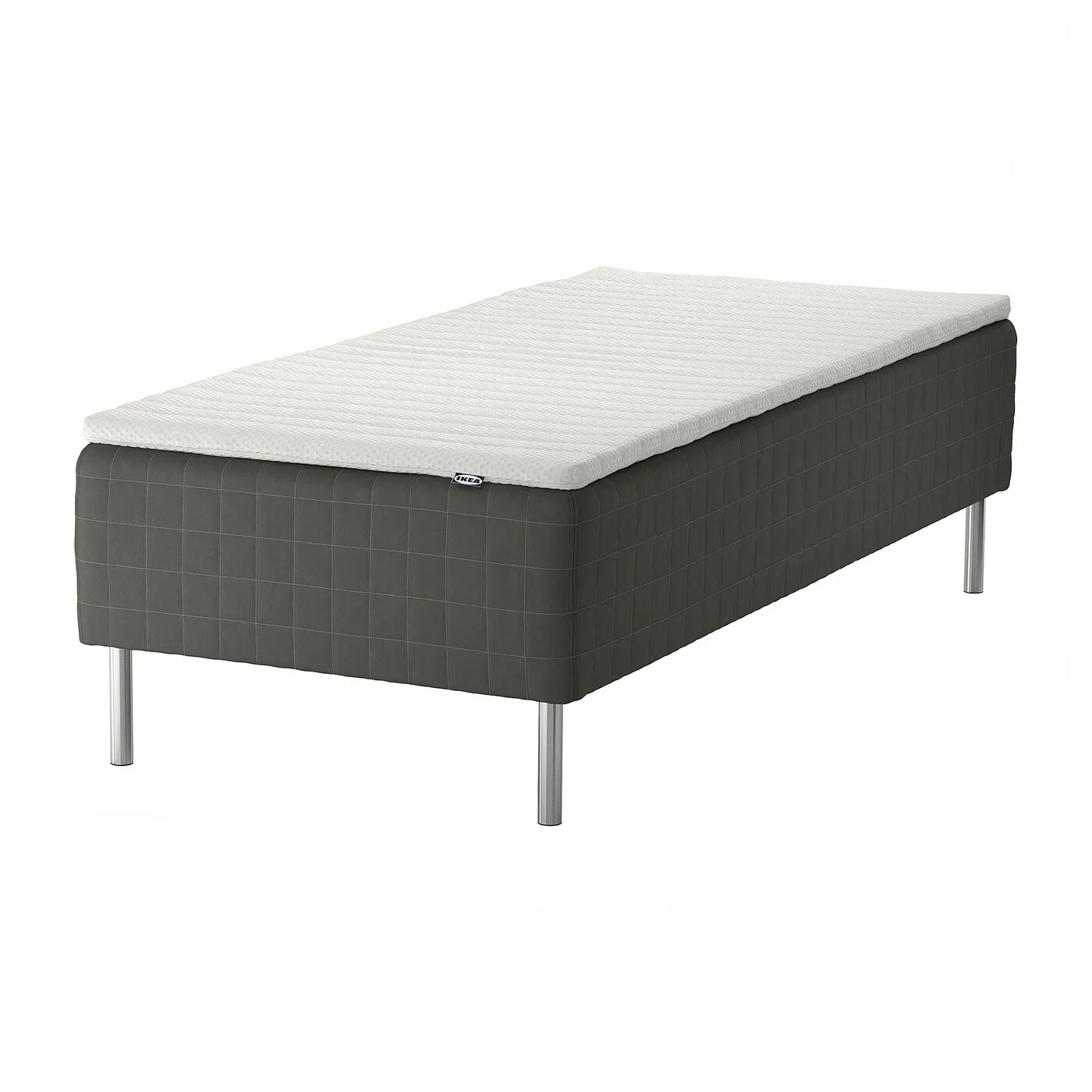 Пружинный матрас на деревянной базе не нуждается в основании или ламелях. Всё, что вам нужно, — это основа матраса и ножки, чтобы кровать была полной.