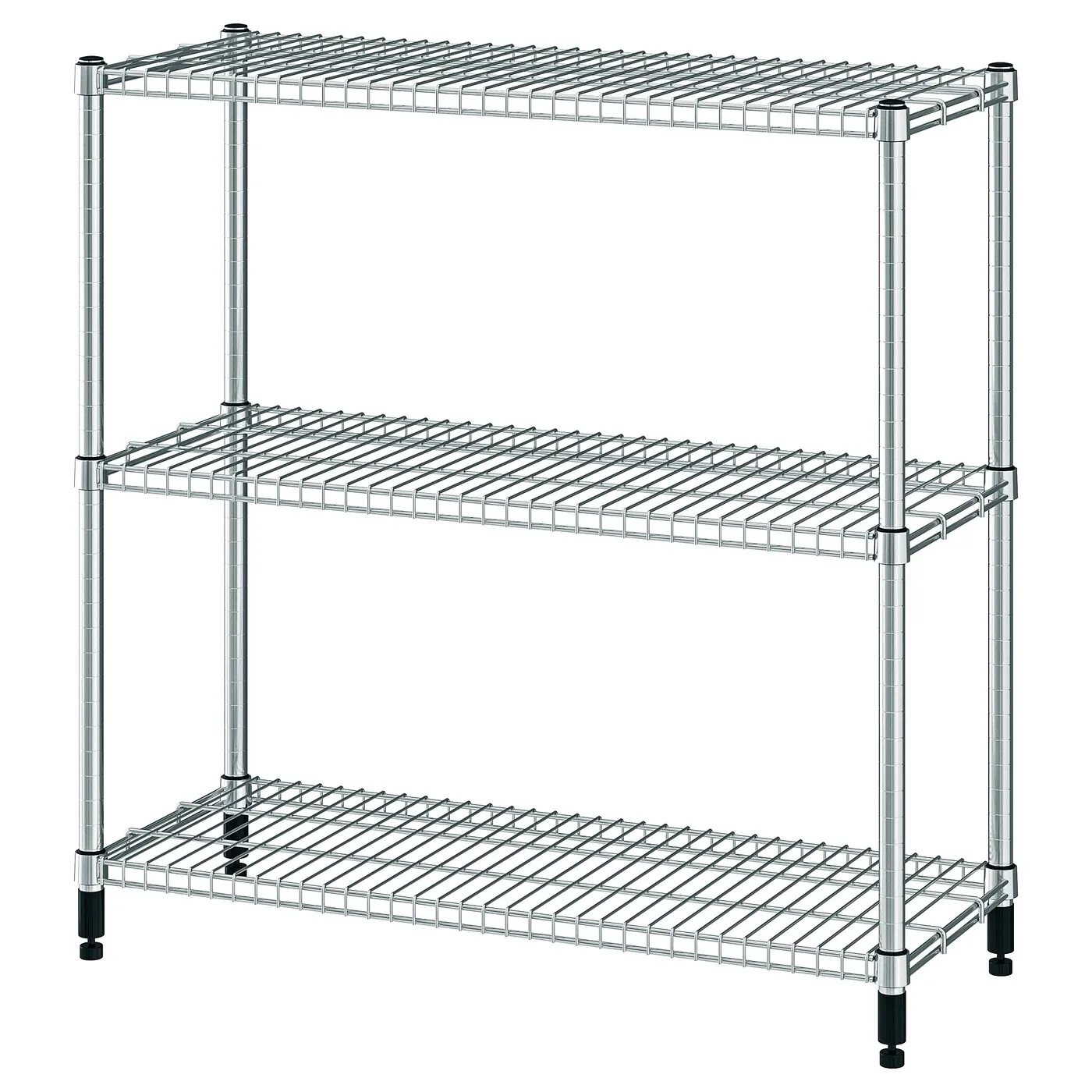 OMAR позволяет организовать много места для хранения на кухне, в ванной комнате и прихожей. Вещи, такие как продукты или полотенца, надежно и на виду лежат на металлических полках. Легко собирать, можно дополнить другими элементами из той же серии.