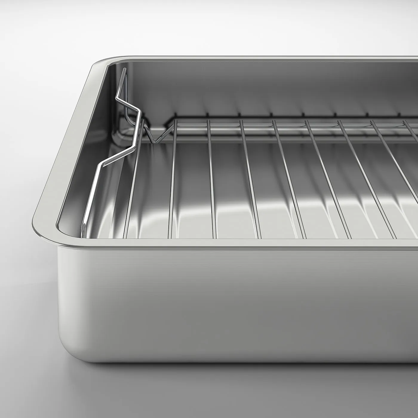 Идеальная форма для всех нужд. Разместите картофель и овощи на дно, установите решетку и положите курицу или стейк сверху – и в духовку или на гриль. Результат – восхитительно вкусно!