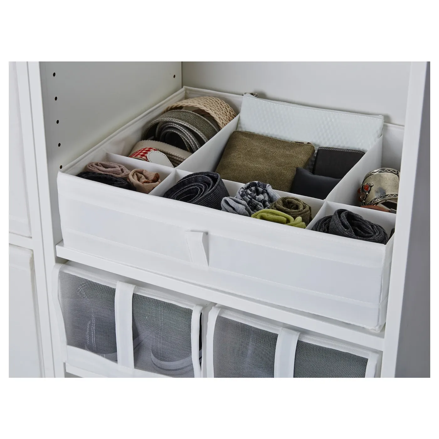 Размер подходит для рамки гардероба PAX глубиной 35 см и системы хранения SKUBB с 6 секциями.