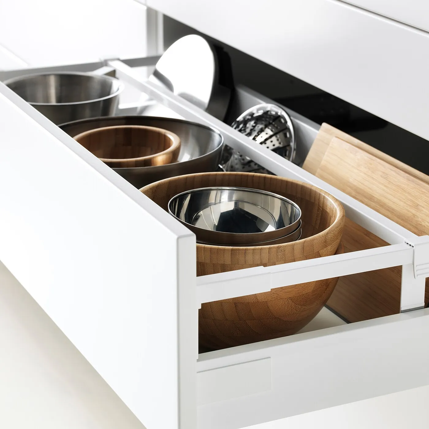 Да, в ящик можно и вправду влюбиться! Он выдвигается полностью, что дает отличный обзор и позволяет организовать пространство по вашему усмотрению. А самое приятное? Он закрывается бесшумно!