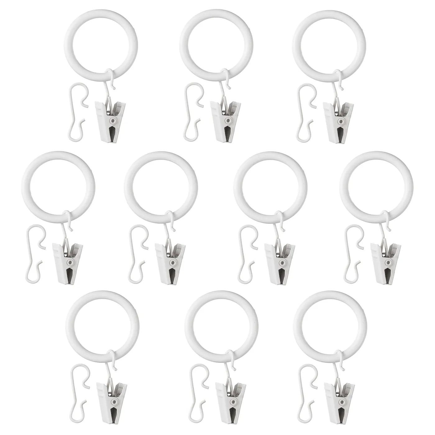 Состав: 10 колец (диаметром 25 мм), 10 клипс с крючками и 10 крючков.