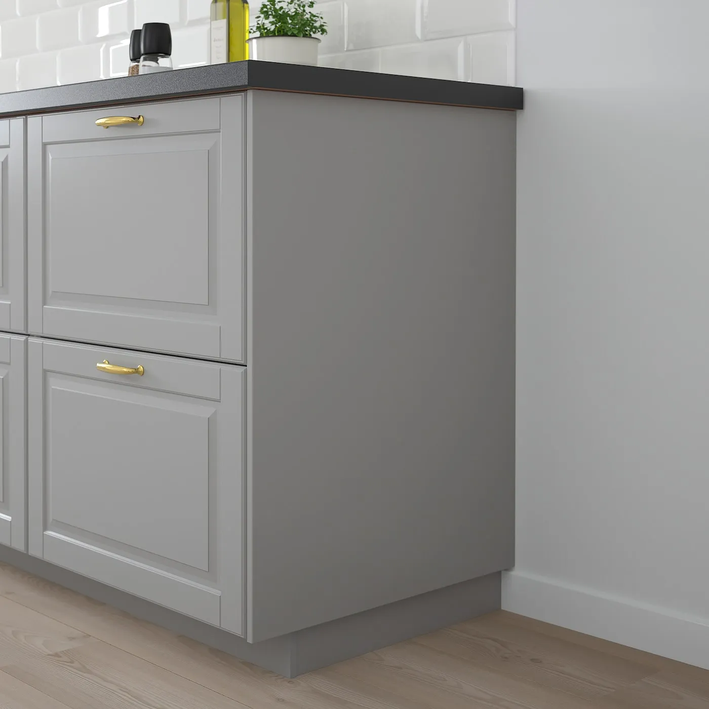 Классический вид в нежно-сером цвете с фасками на панелях, которые создают традиционный характер и тёплую атмосферу. Фасады BODBYN легко поддерживать в чистоте благодаря гладкой лакированной поверхности.